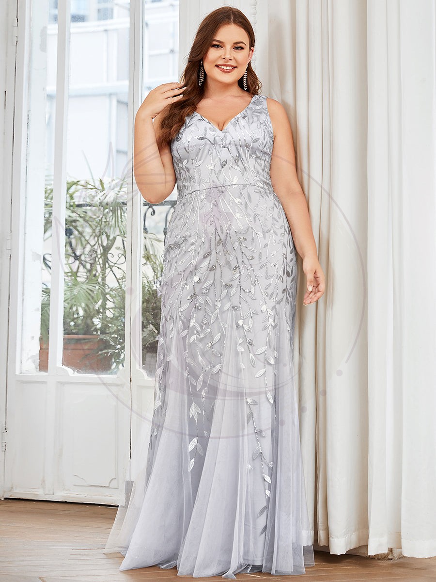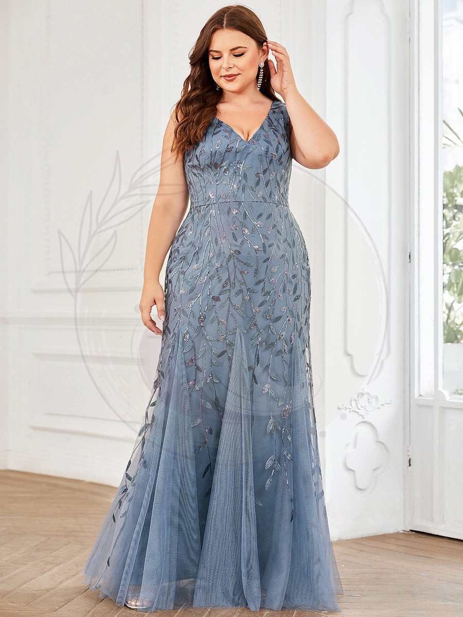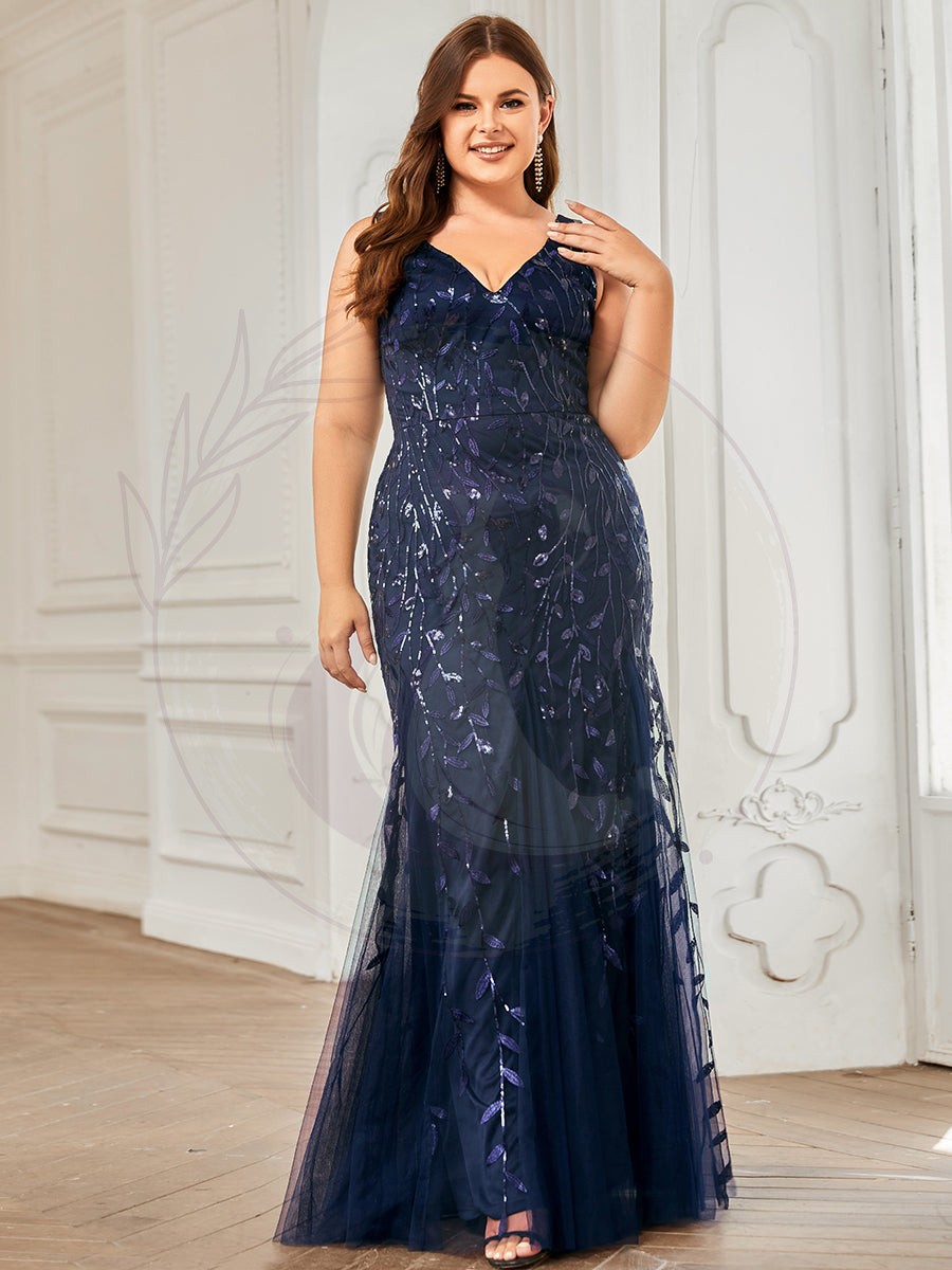 Sublimez votre allure avec cette magnifique robe de gala en tulle orné de paillettes, disponible en grandes tailles. Son encolure en V plongeant et sa coupesirène souligneront votre silhouette avec élégance. La décoration délicate en motif feuille apporte une touche de romantisme à l’ensemble. Idéale pour ceux qui veulent briller avec distinction, cette robe est parfaite pour divers événements formels tels que soirées de gala, cocktails, bals de promotion, cérémonies de remise de diplôme, mariages, et bien d’autres occasions.