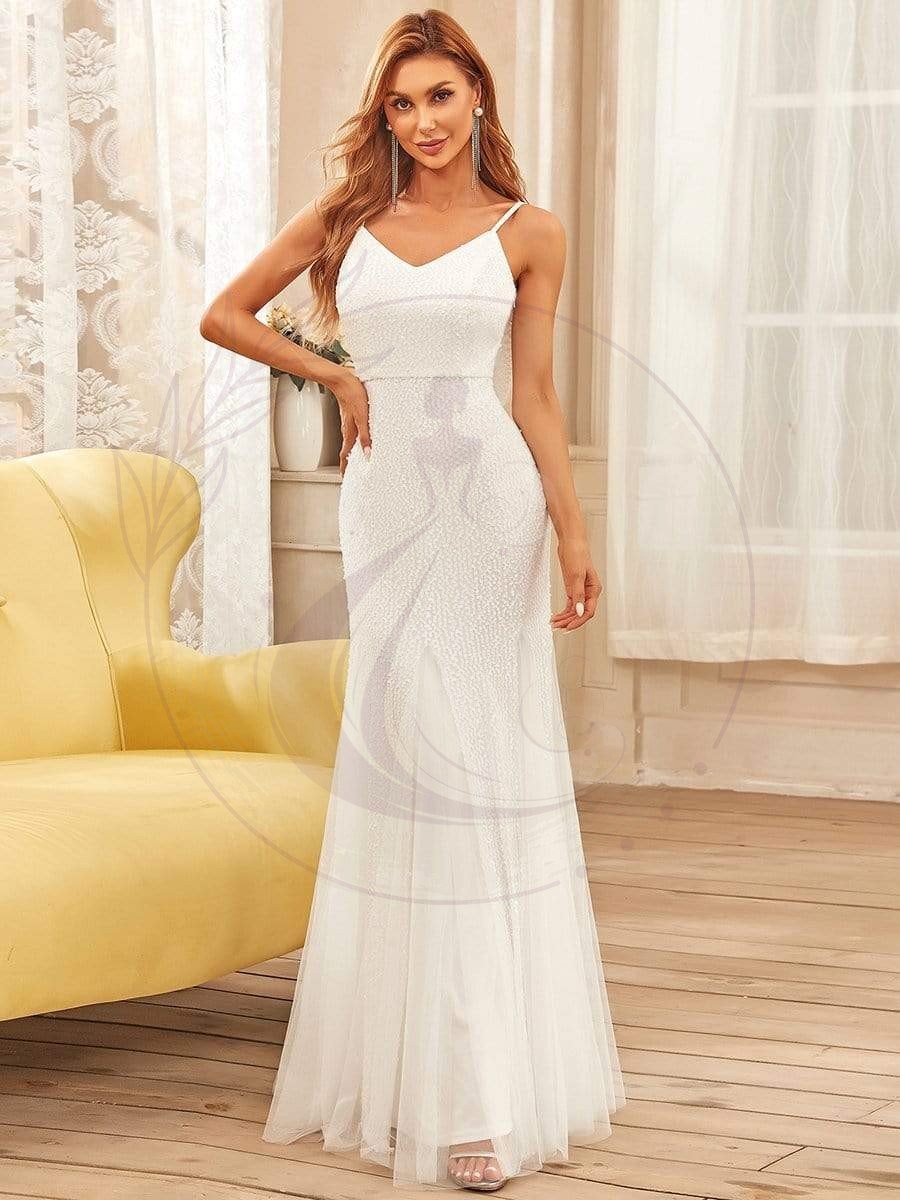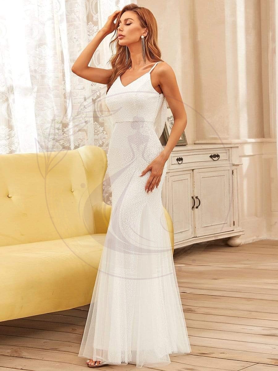 Cette élégante robe de soirée est un concentré de charme avec ses finitions raffinées. Vous serez captivée par son dos échancré, son décolleté en forme de V ainsi que ses scintillements discrets qui s’entrelacent à partir du haut de la robe jusqu’à la taille. Quant à la jupe, elle superpose plusieurs voiles et présente des plis délicats pour un rendu sophistiqué.