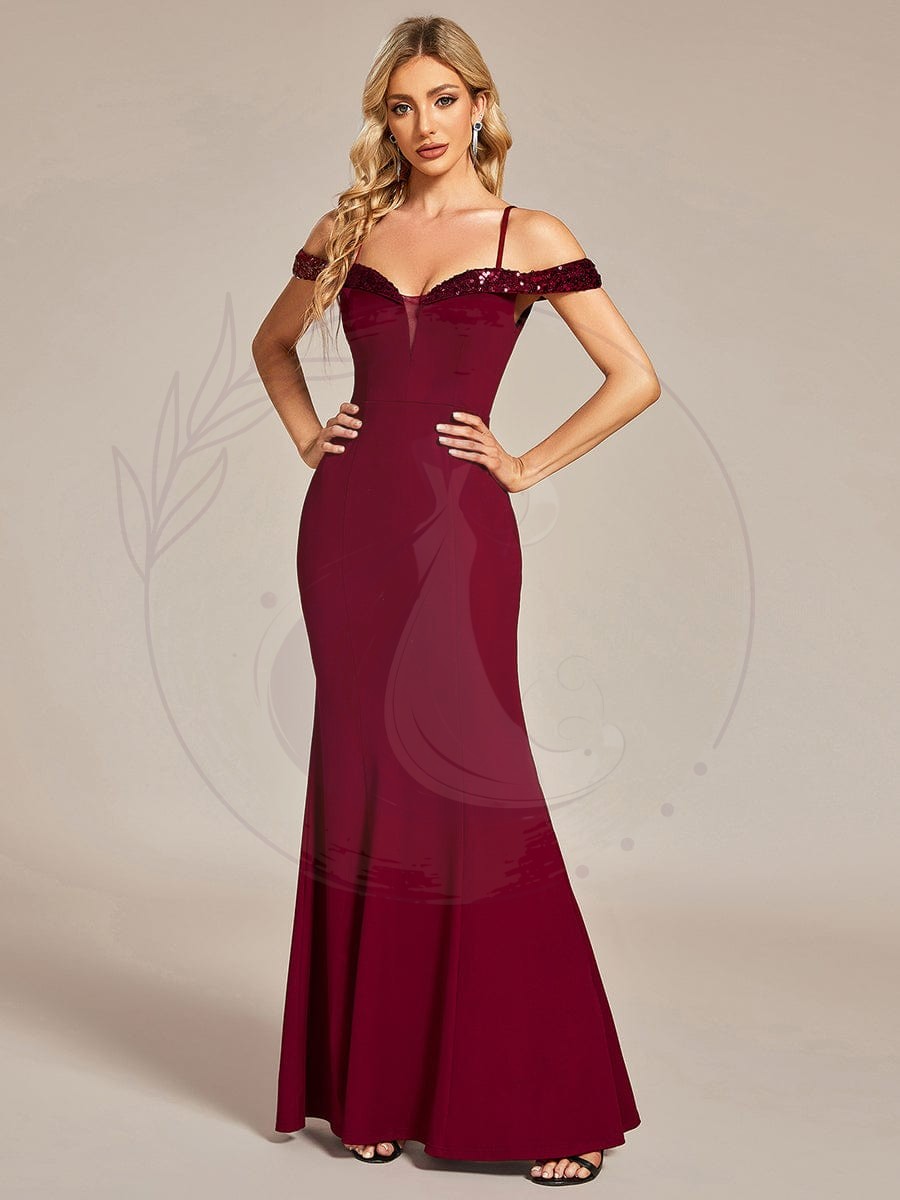 Robe de soirée élégante à manches à paillettes Bretelles Fines