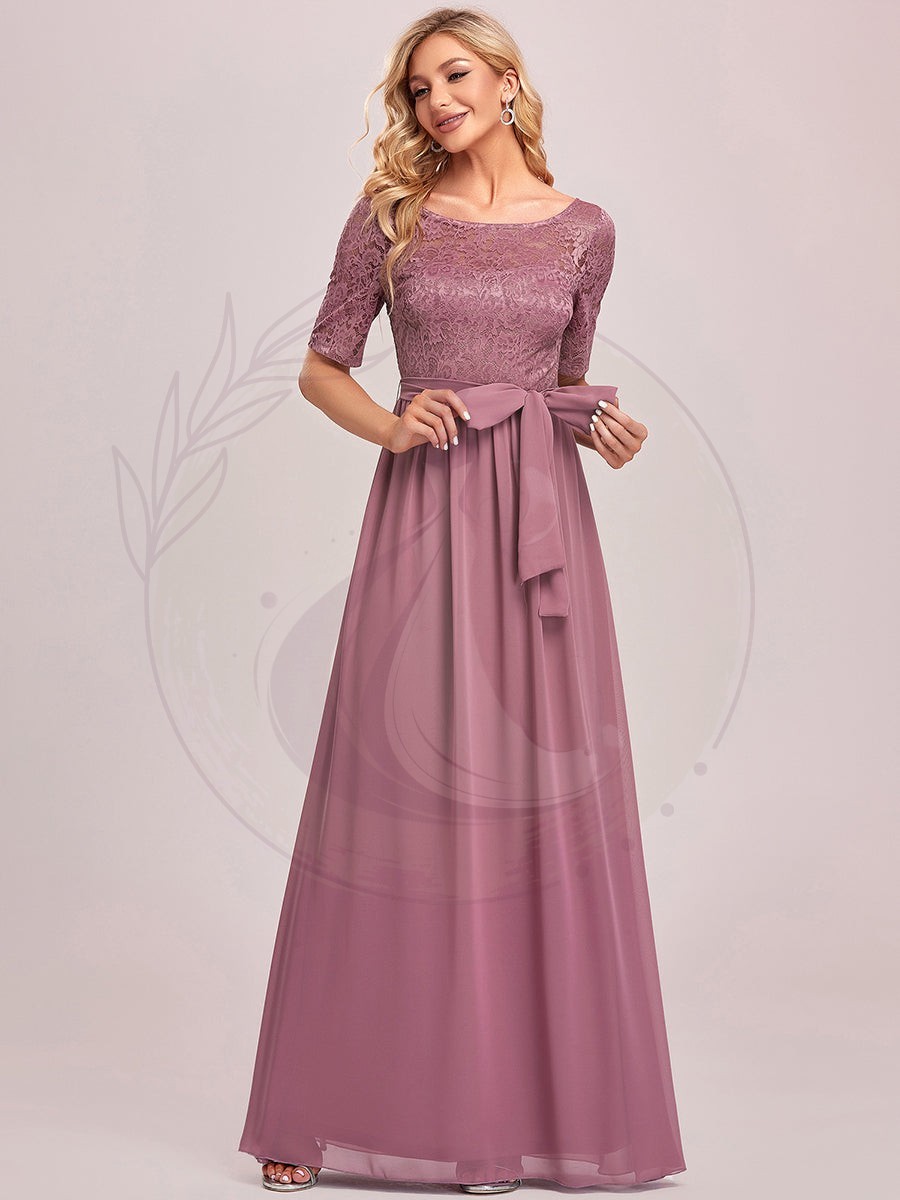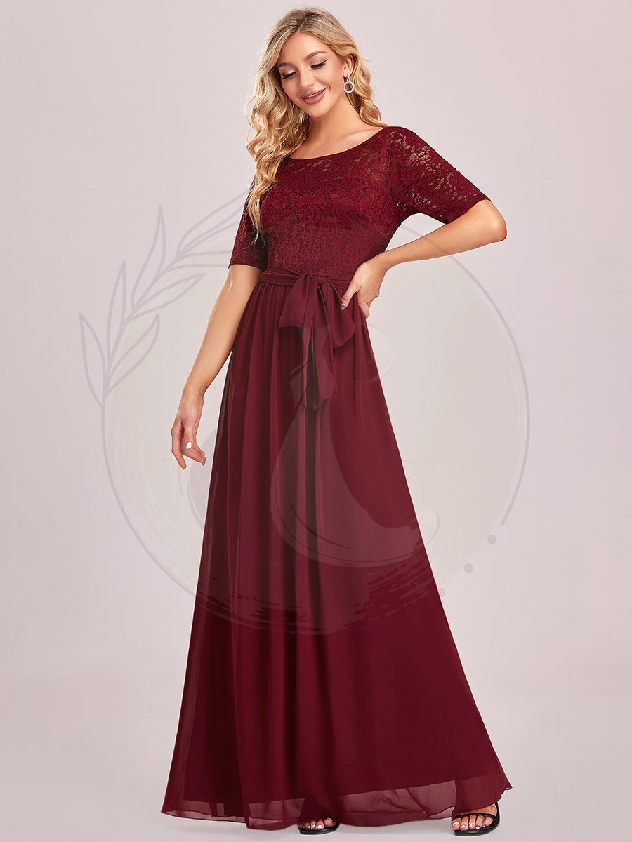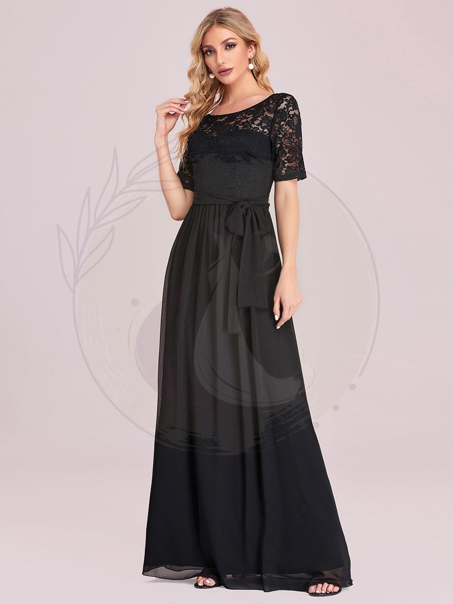 Robe de soirée élégante en dentelle et mousseline avec ceinture pour femmes