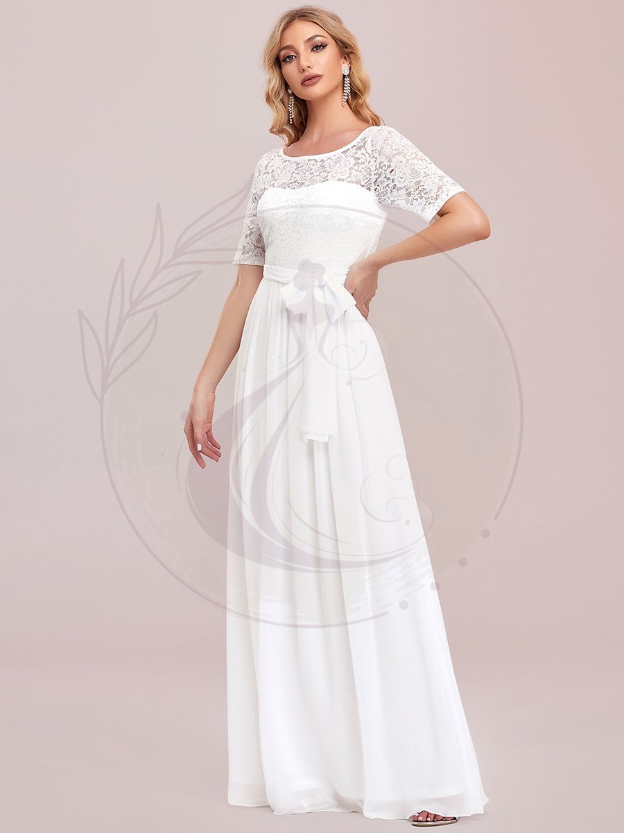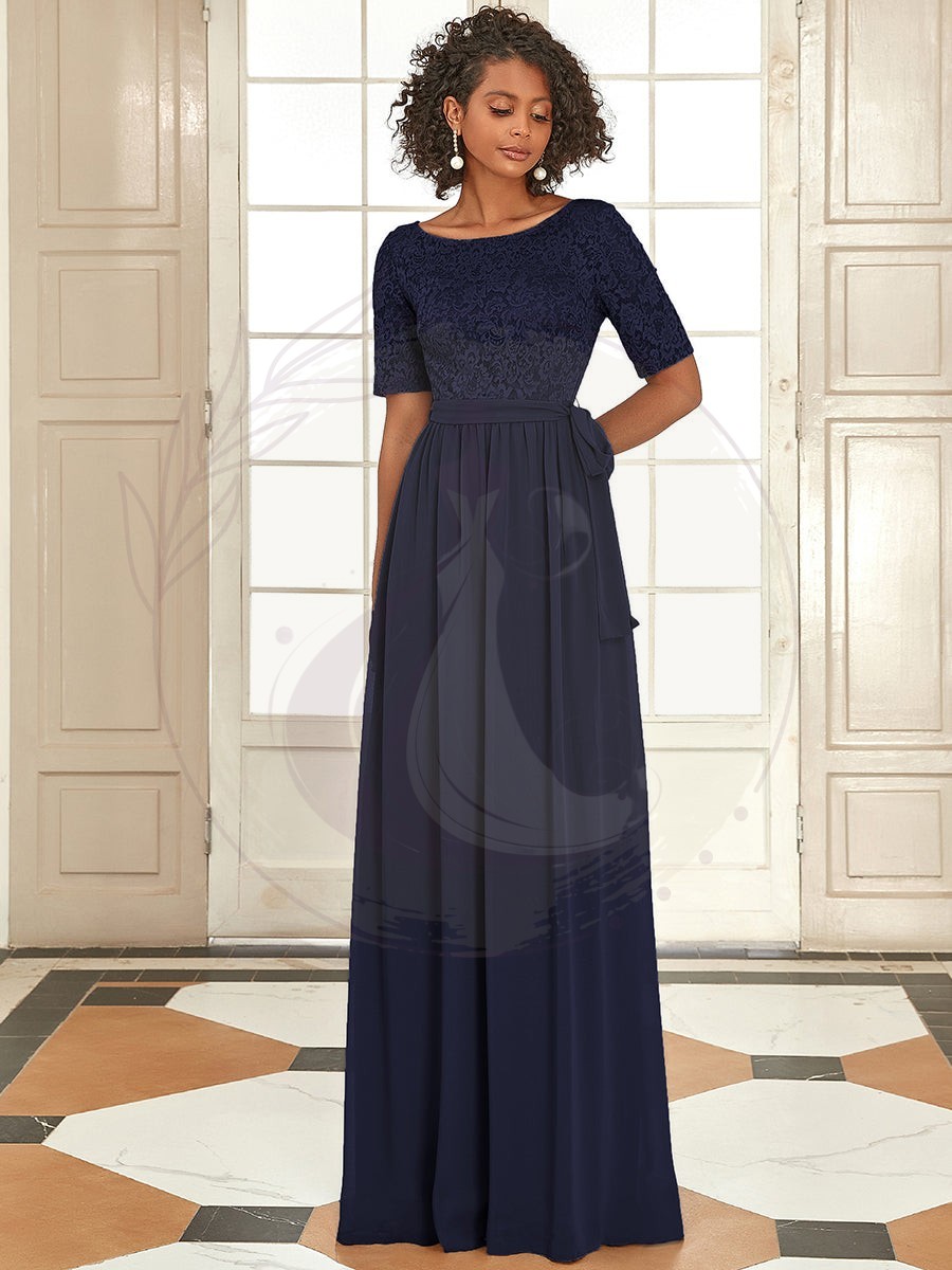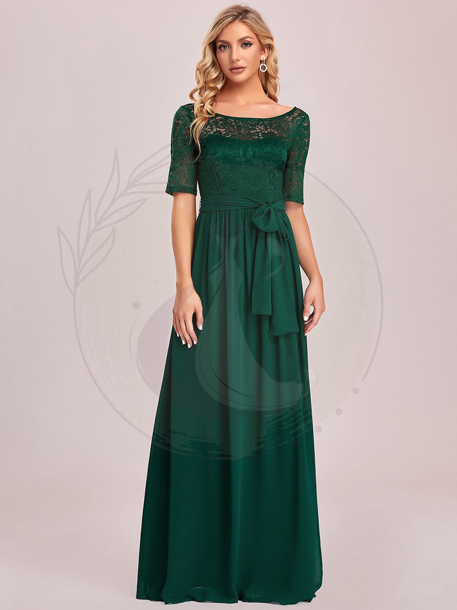 Robe de soirée élégante en dentelle et mousseline avec ceinture pour femmes