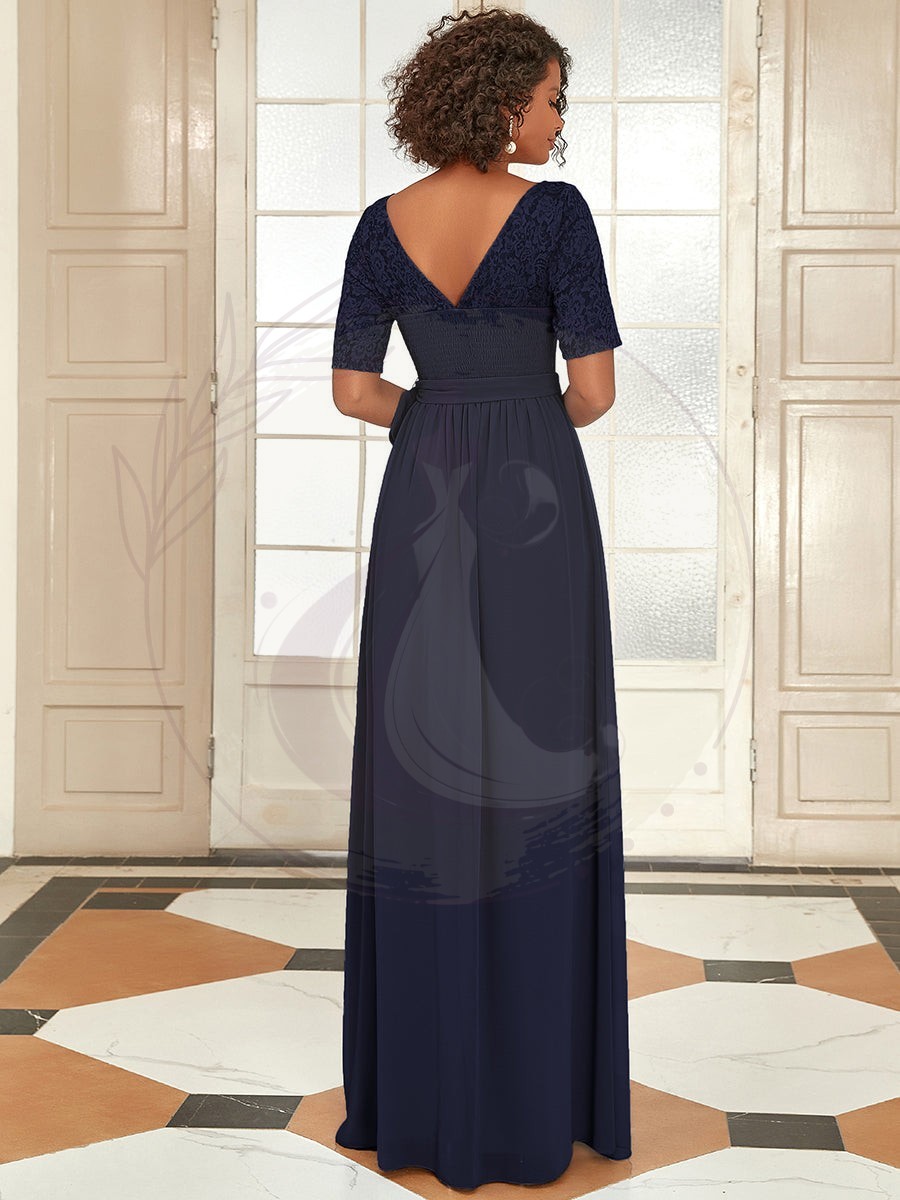 Avec son encolure en V intemporelle, sa coupe fluide et ses manches mi-longues, cette robe pour la mère de la mariée se distingue par son élégance sans effort. Elle est idéale pour les célébrations nocturnes, les soirées de gala, les retrouvailles, les cérémonies de mariage et autres événements formels où l’élégance est de rigueur !