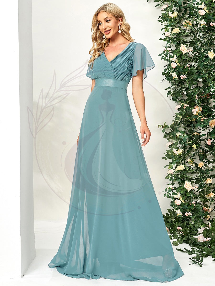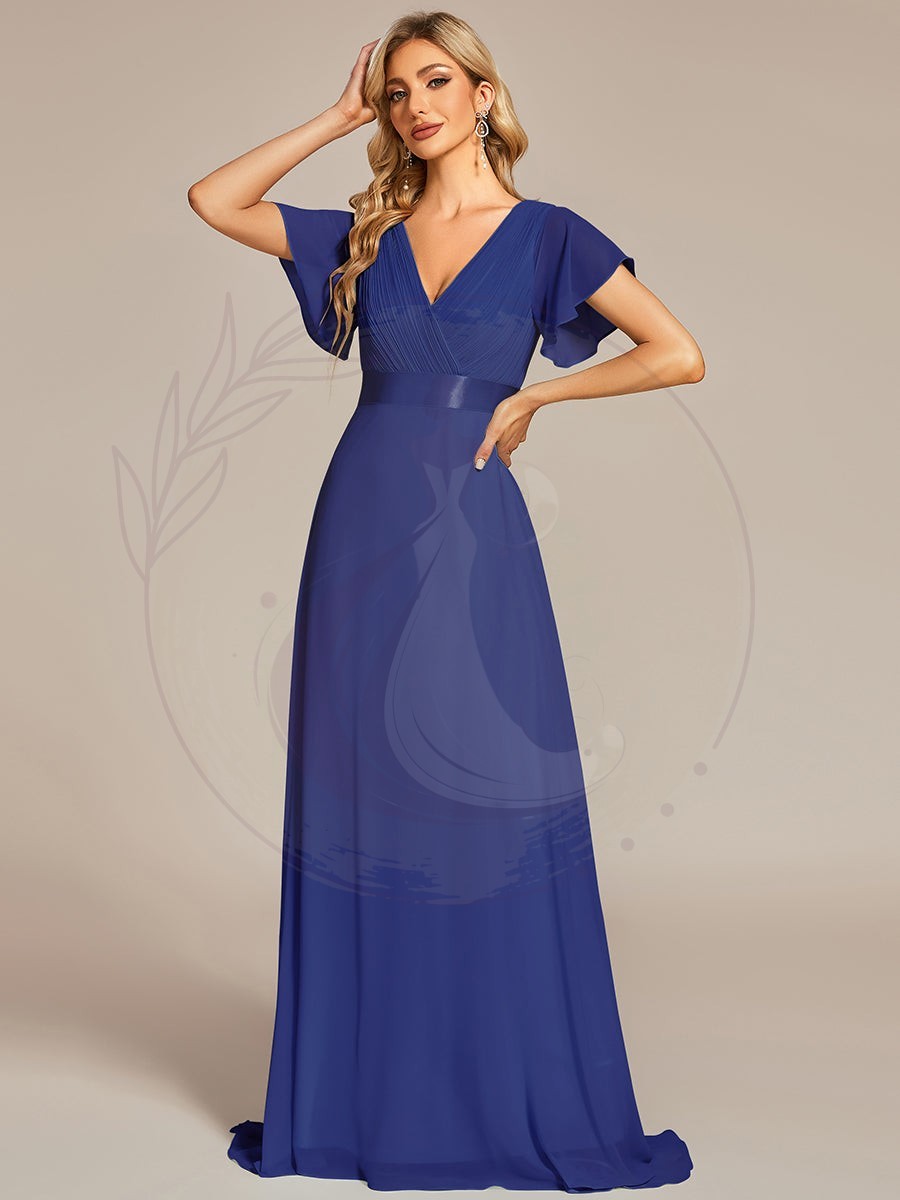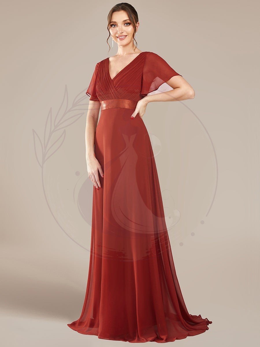 Robe de soirée élégante en mousseline à taille haute et manches courtes