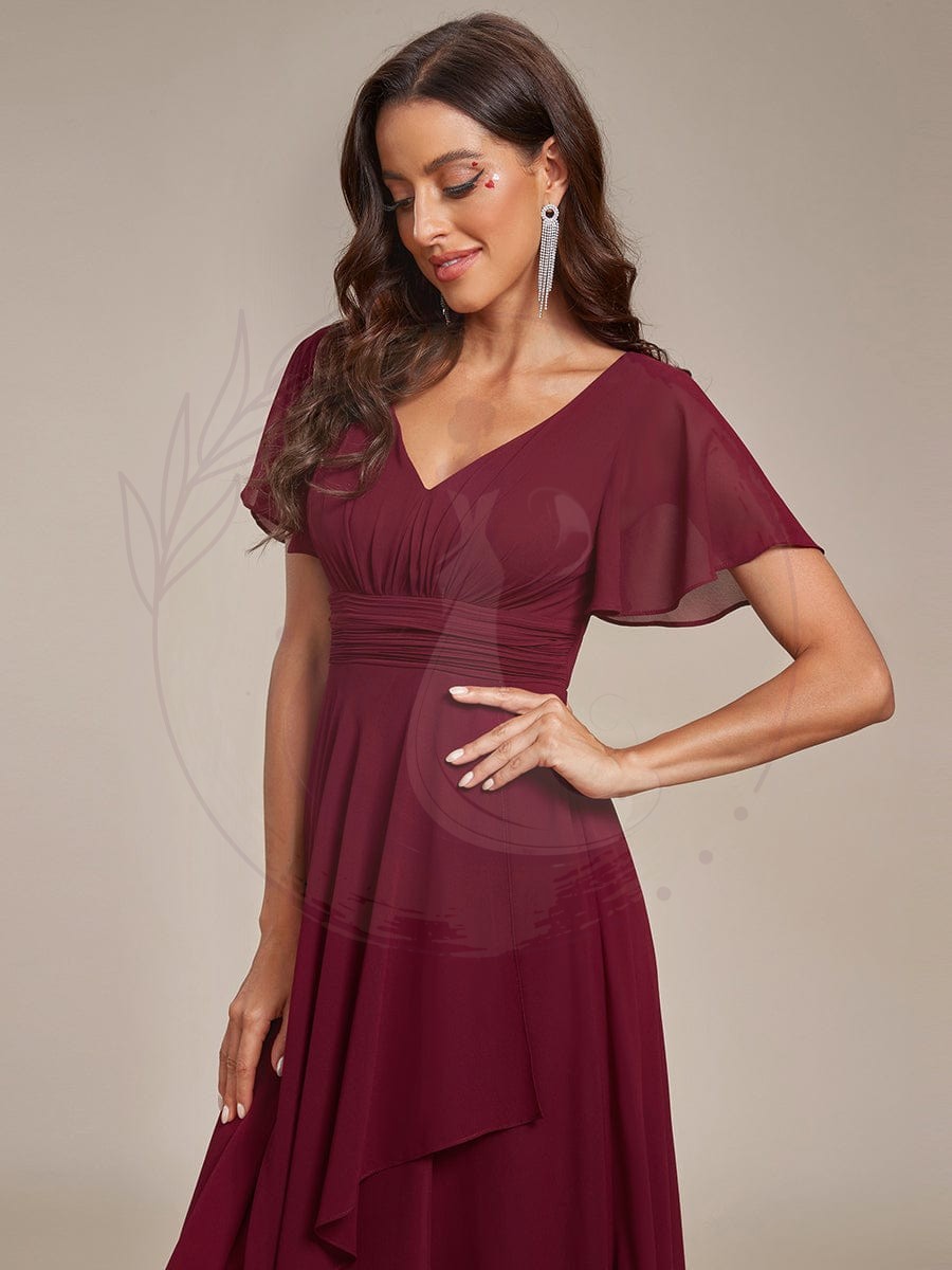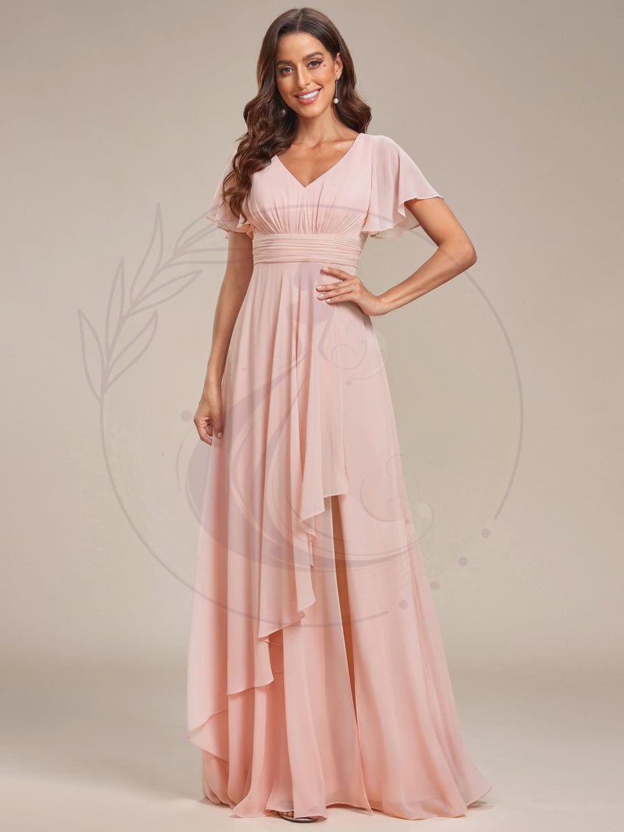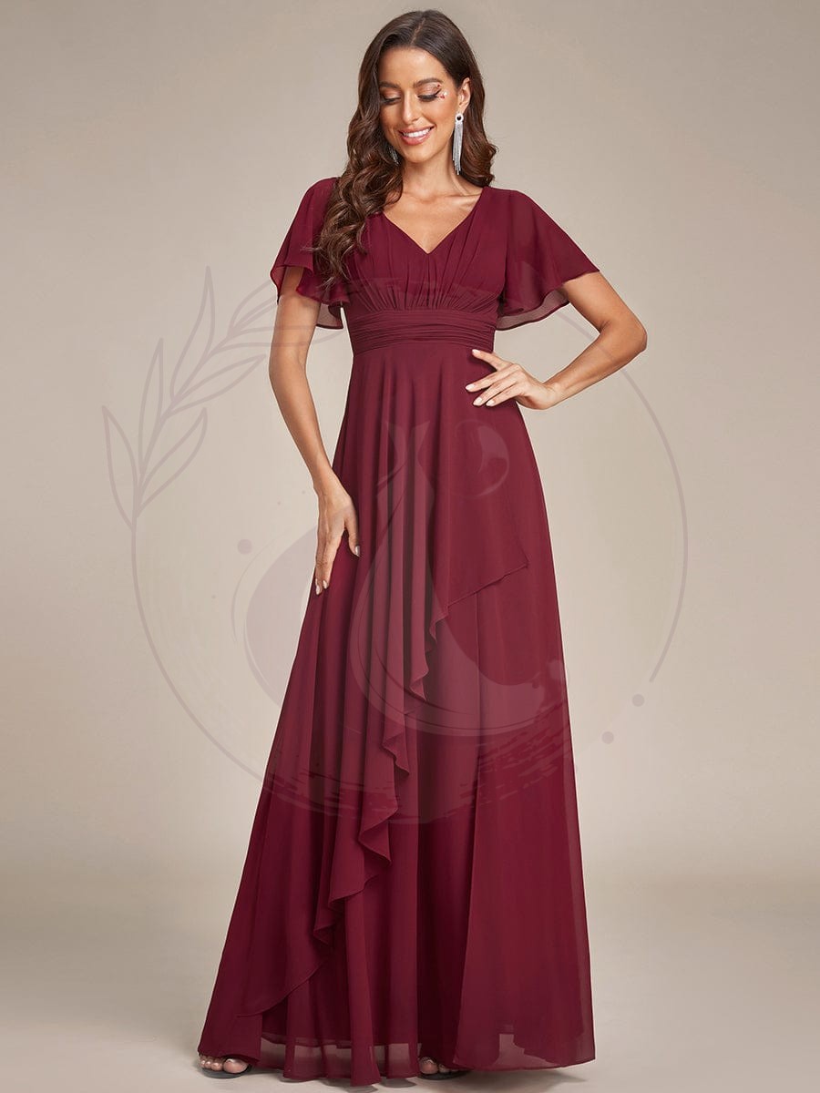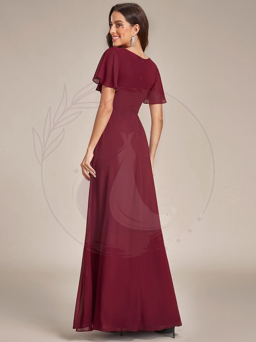 Robe de soirée en mousseline à manches volantées et à volants