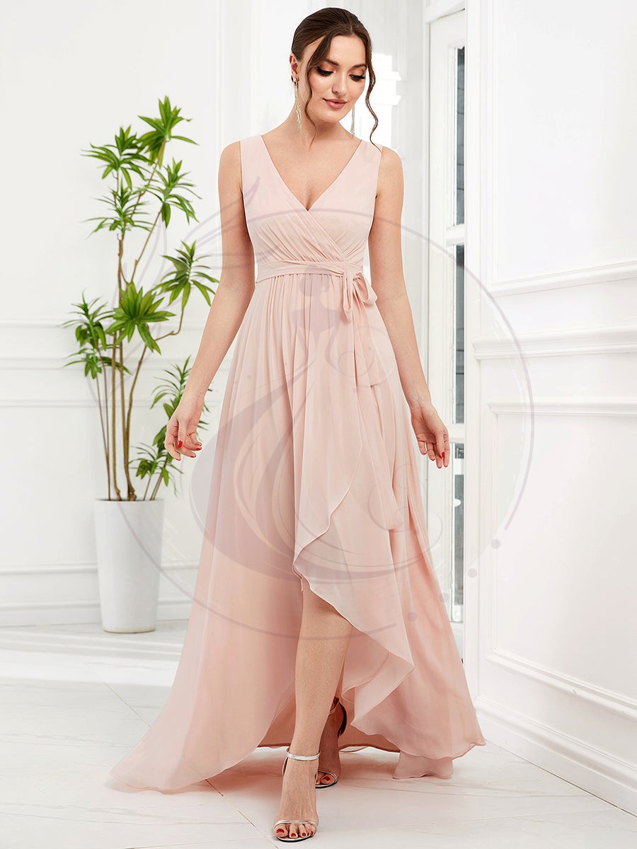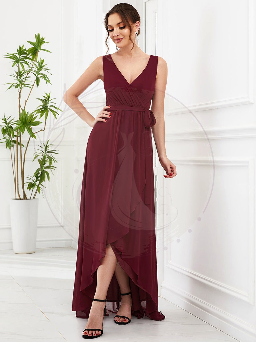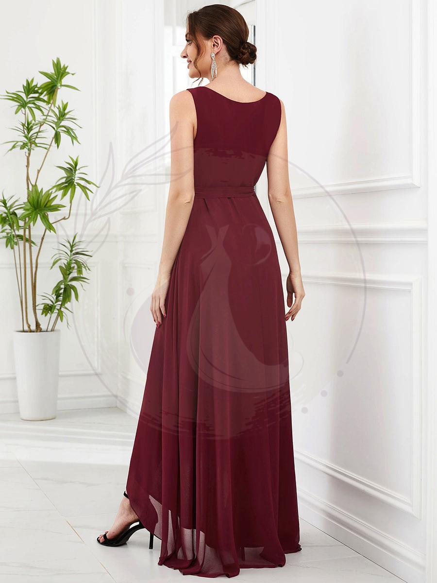 Robe de soirée en mousseline sans manches avec fente et col en V