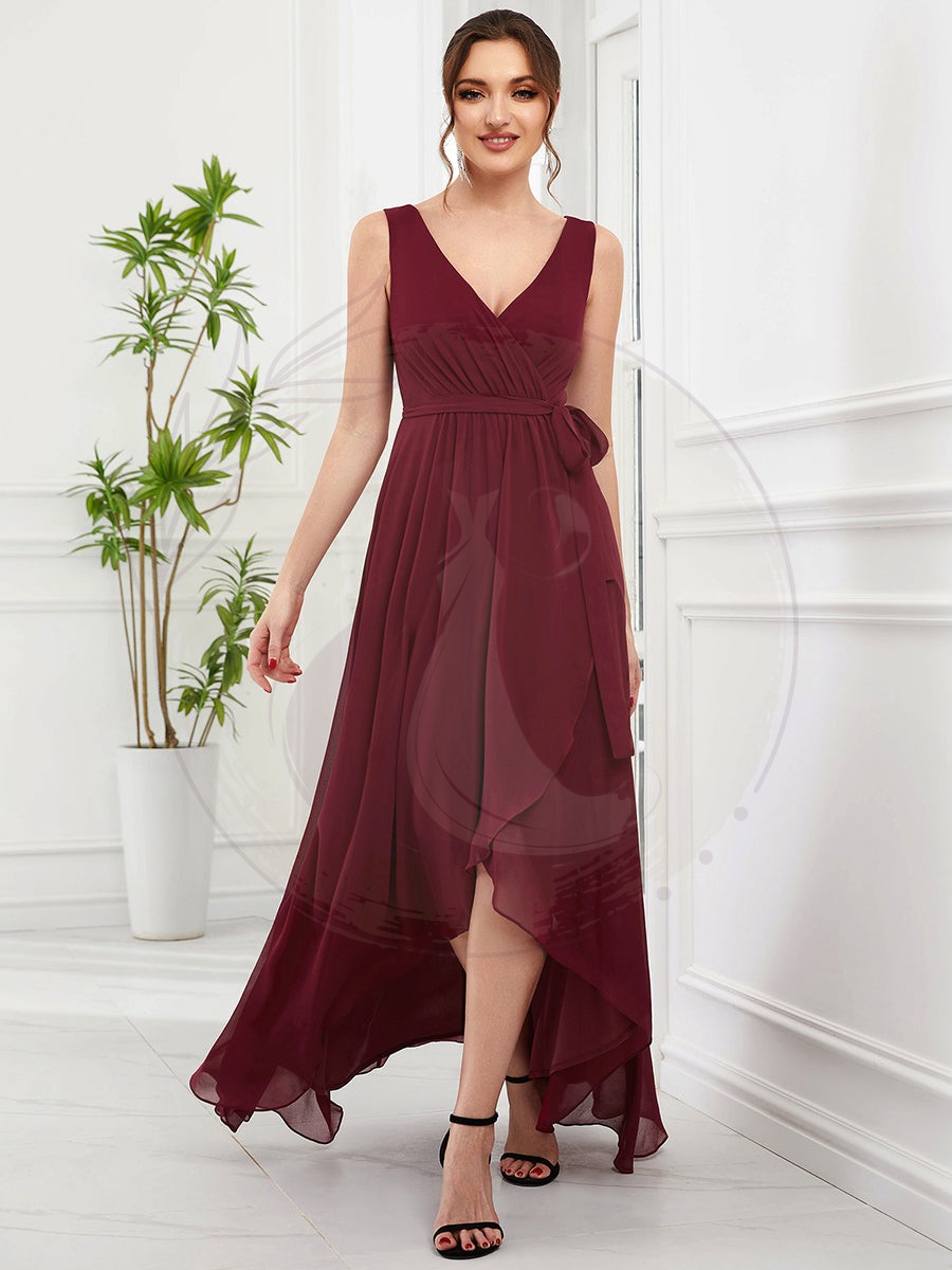 Affichez une allure chic et raffinée dans cette robe longue de soirée confectionnée en mousseline fluide, idéale pour la mère de l’époux/épouse ou comme tenue de demoiselle d’honneur. Ses étages aériens asymétriques de mousseline et sa ceinture délicatement nouée à la taille apporteront une touche d’élégance. La coupe est agrémentée d’un haut épuré sans manches et un décolleté en V séduisant, mis en valeur par une fente gracieuse sur le devant. Cet ensemble marie harmonieusement originalité et intemporalité.