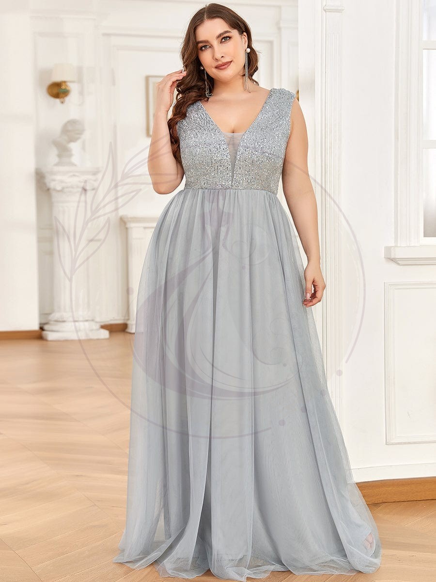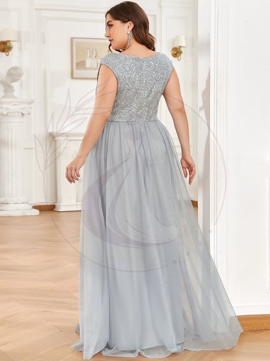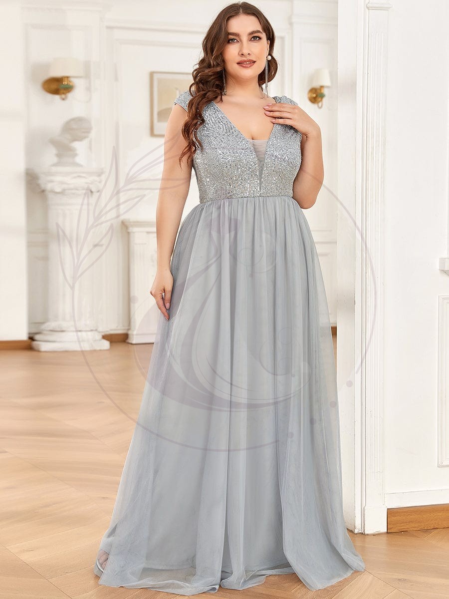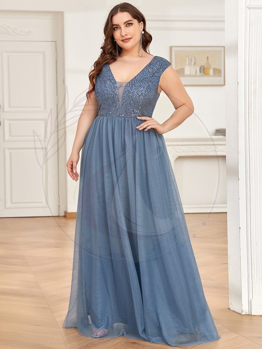 Robe de soirée en tulle à encolure en V plongeante à sequins et illusion de grande taille