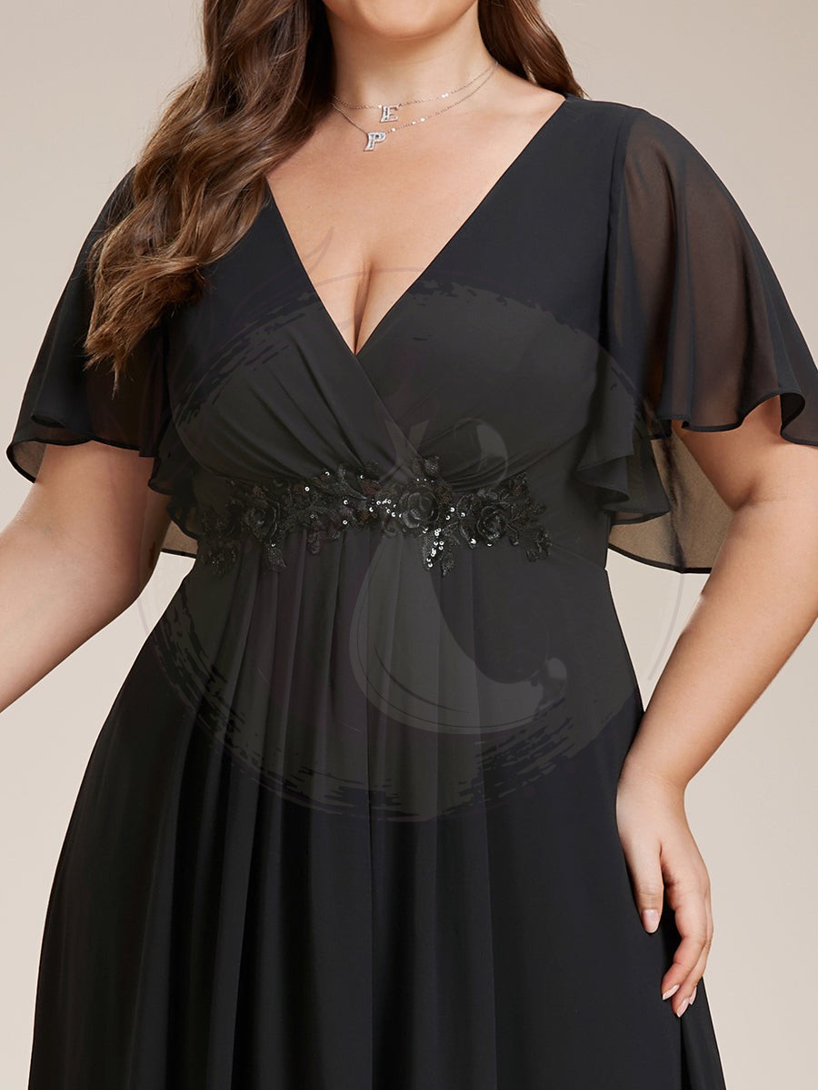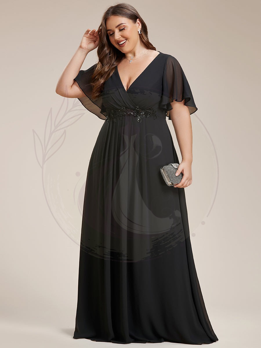 Sublimez votre apparition lors d’évènements avec notre robe de soirée en chiffon, synonyme d’élégance. Son design fluide avec des manches aériennes renforce une allure évasée et majestueuse, tandis que la découpe impériale sculpte et valorise votre morphologie. L’ornement délicat de motifs appliqués sur le chiffon évoque un raffinement et un attrait incontestable. Parfaite pour une réception de prestige ou une cérémonie exclusive, cette parure a été pensée pour accentuer votre assurance et votre éclat, captivant l’admiration de tous à chacun de vos mouvements.