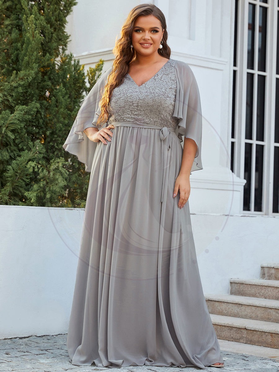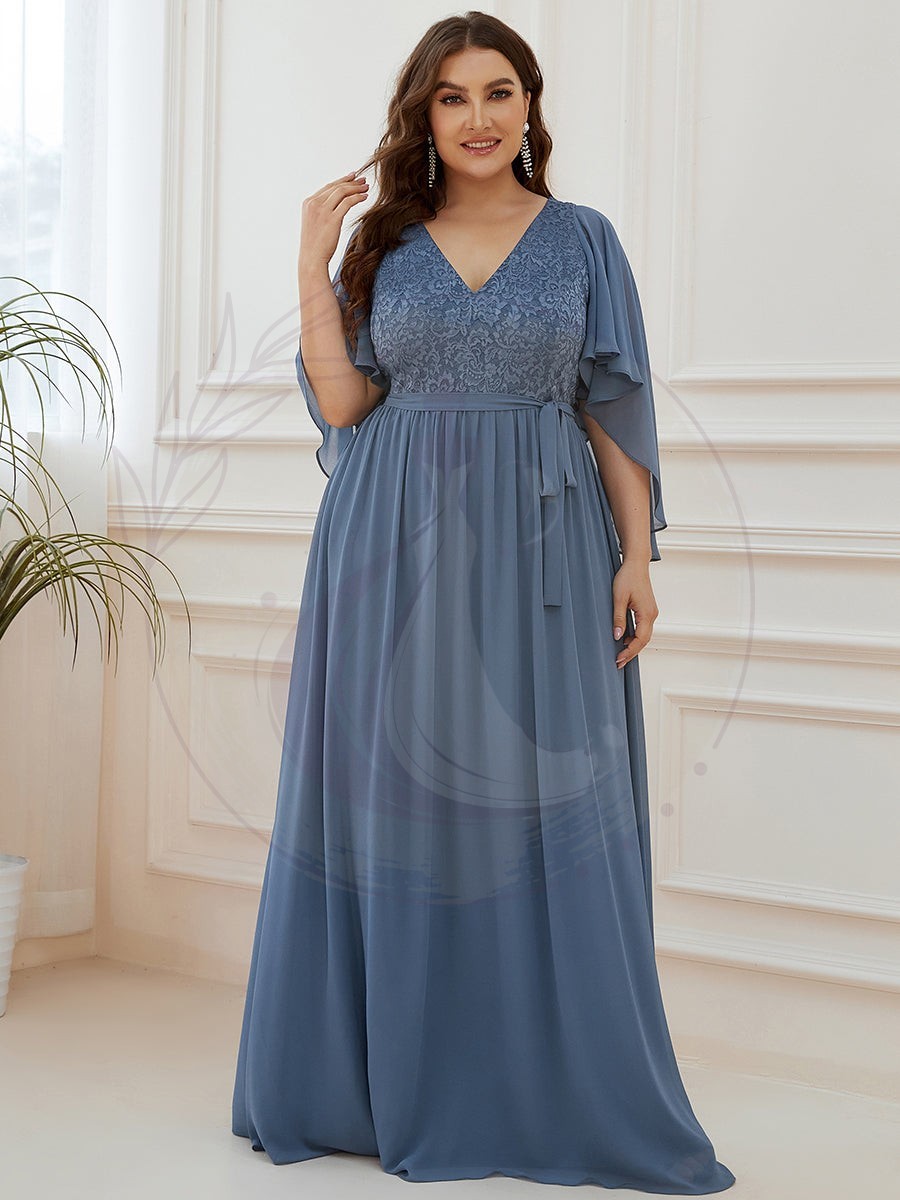 Robe de Soirée Grande Taille à Col en V Profond avec Dentelle