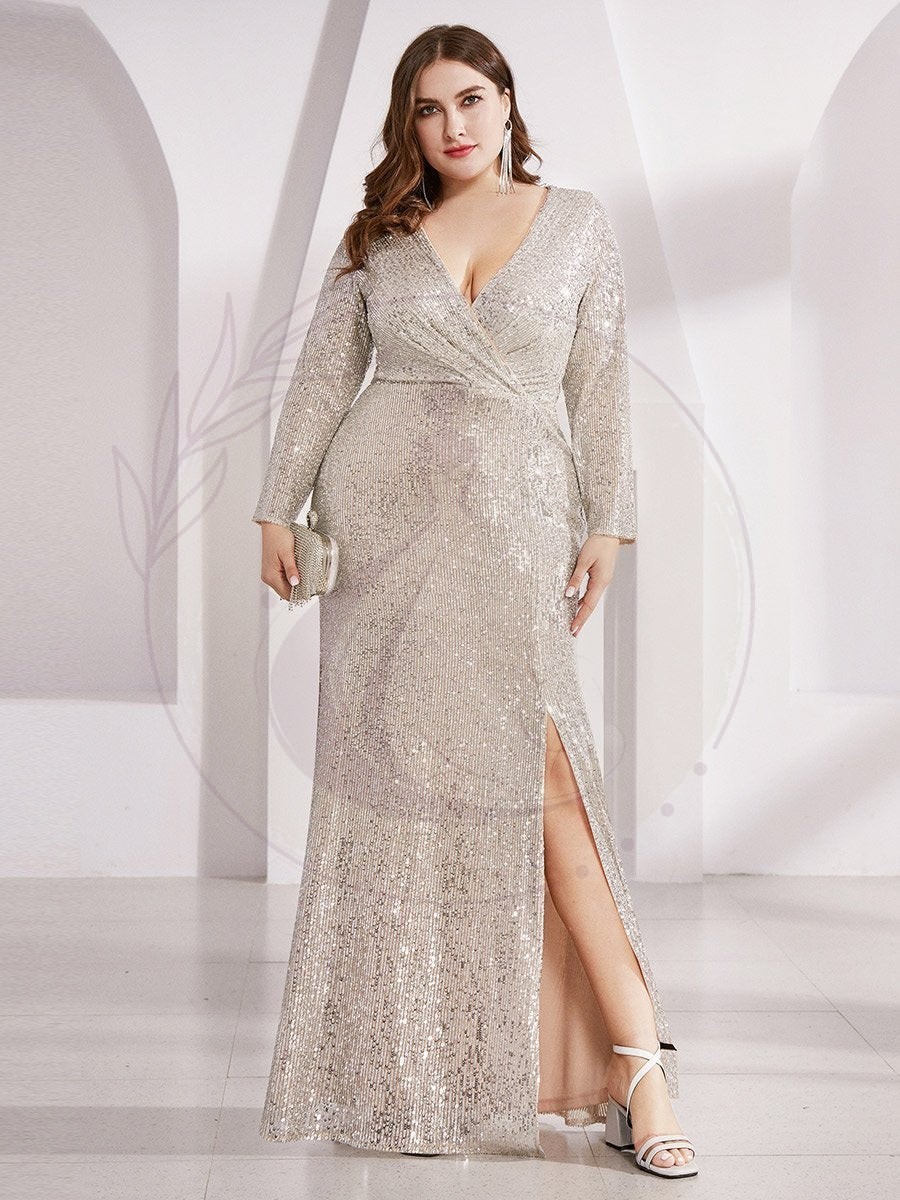 Robe de Soirée Grande Taille Brillante à Paillettes avec Fente