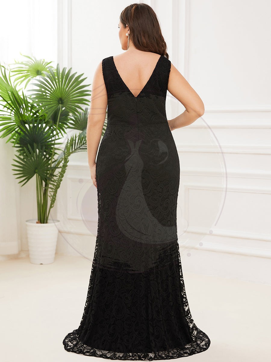 Robe de soirée Grande taille plissée en dentelle moulante sans manches longue