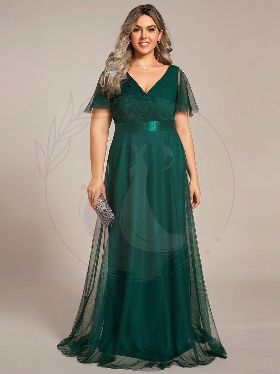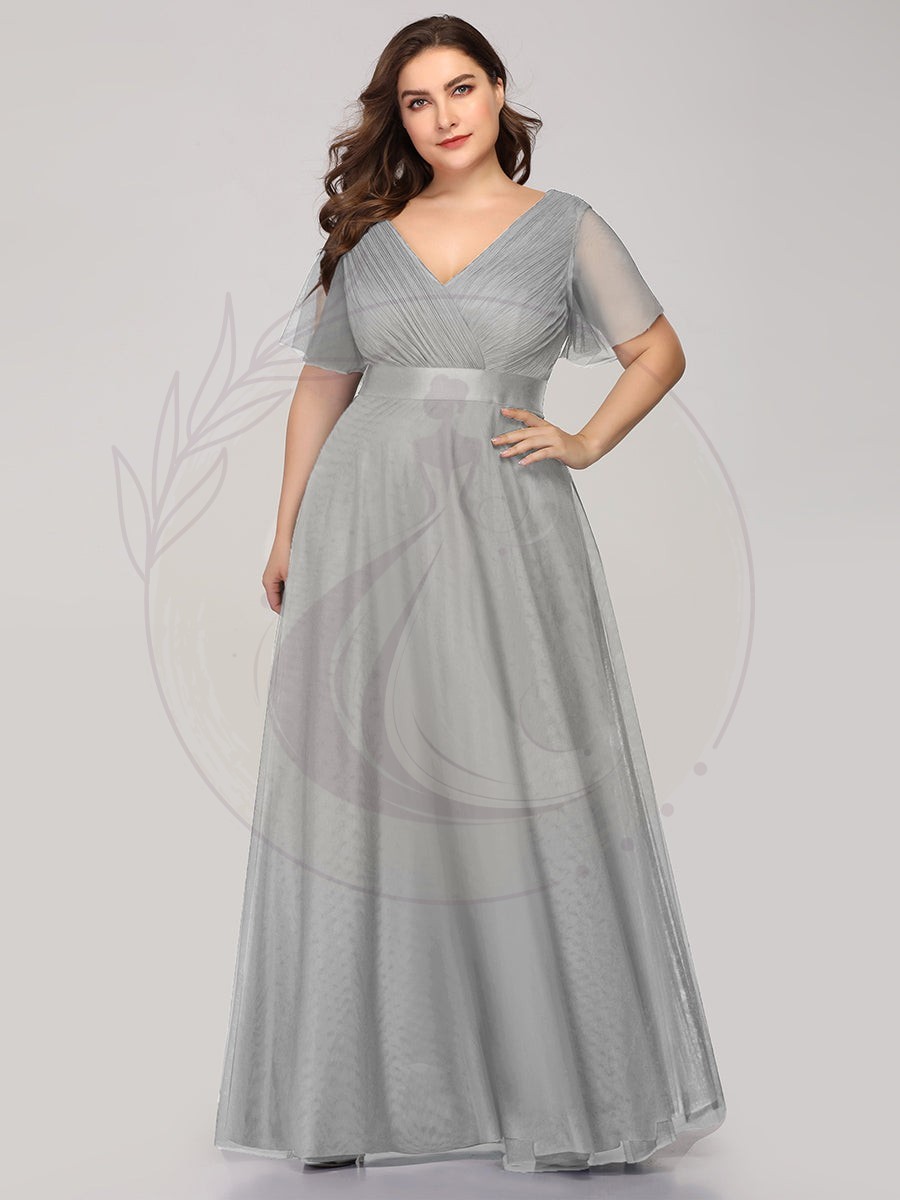 Robe de soirée grande taille pour femmes avec manches courtes