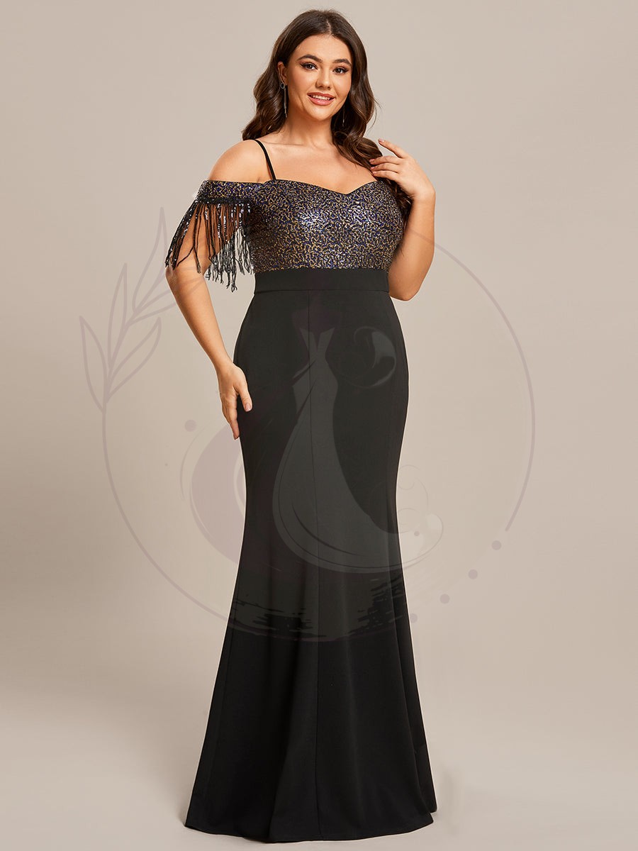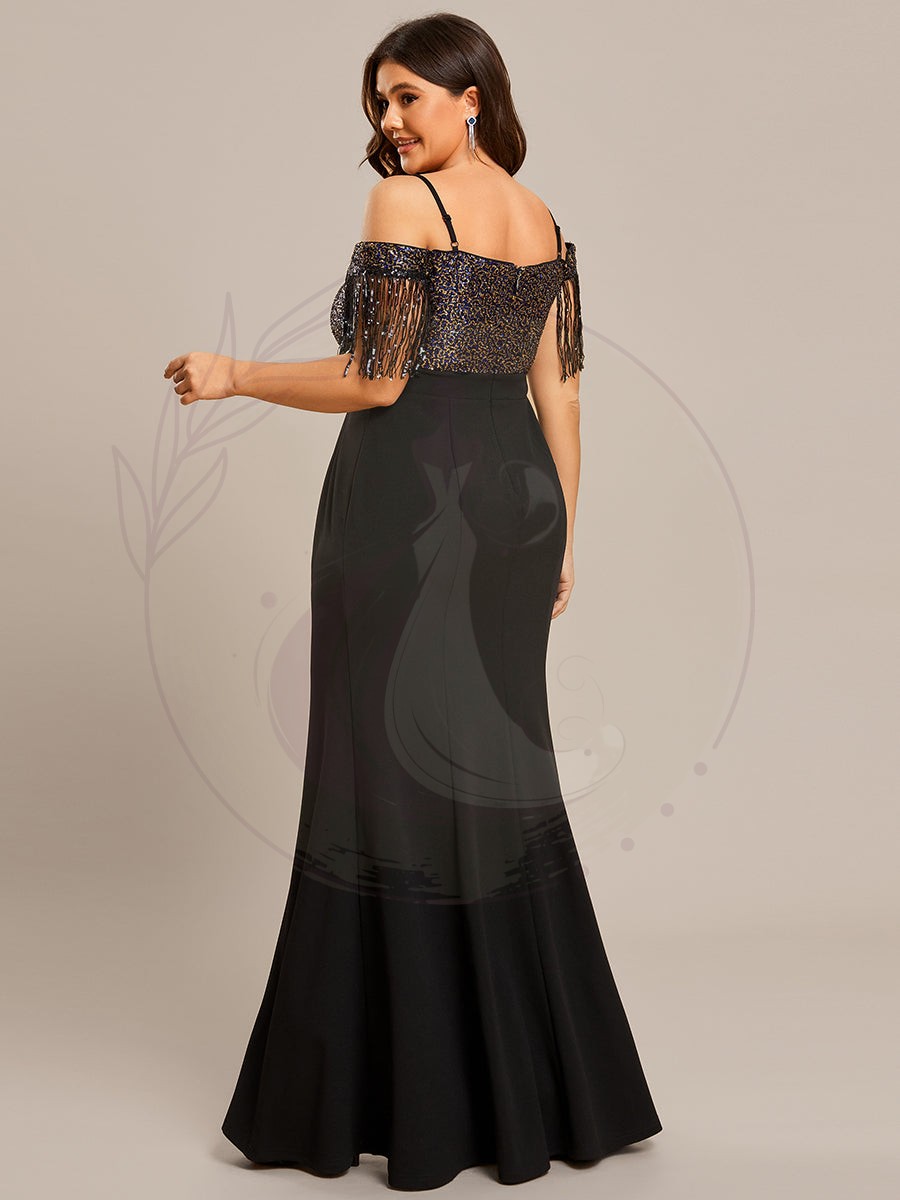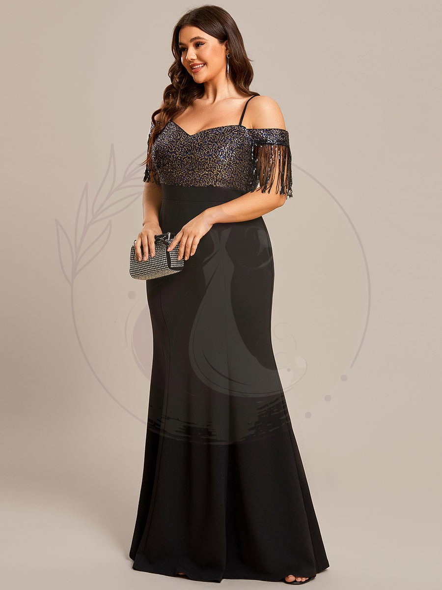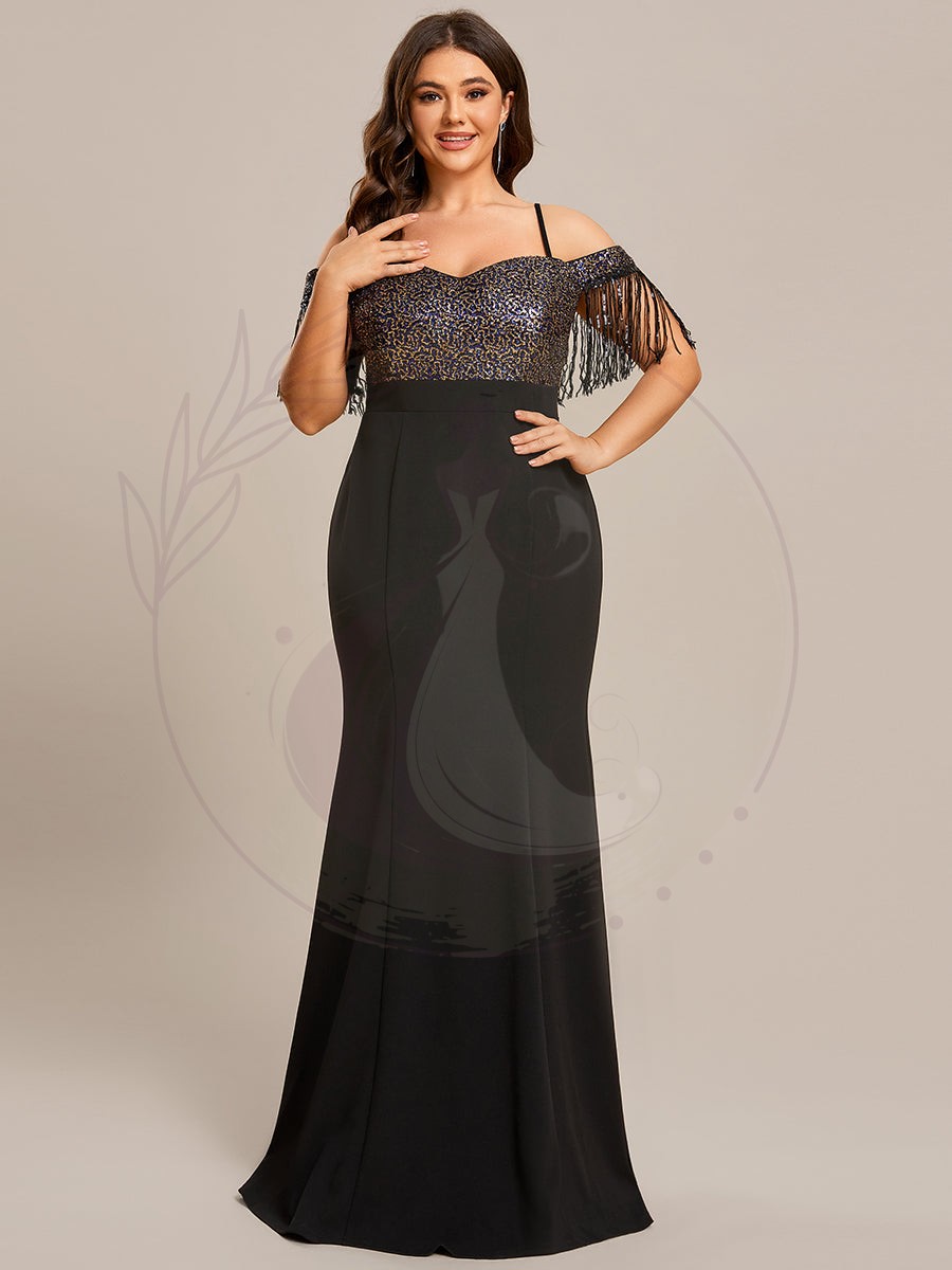 Robe de Soirée Manches Courtes à Franges Grande Taille Bretelles fines