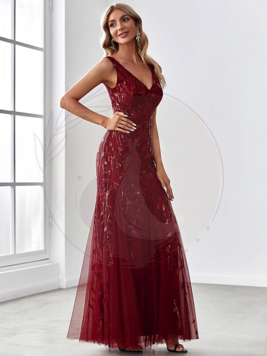Robe de soirée Sexy Longue belle à double col en V pour femmes