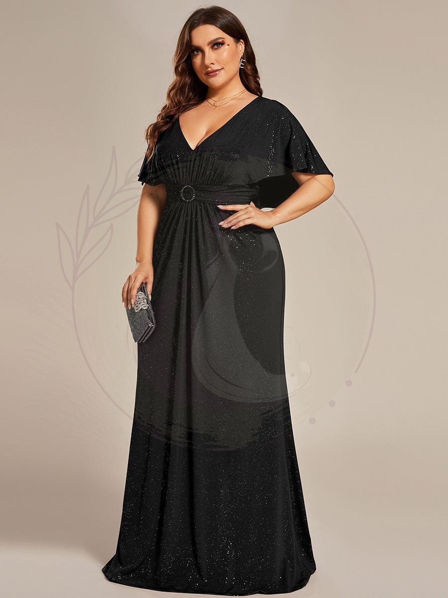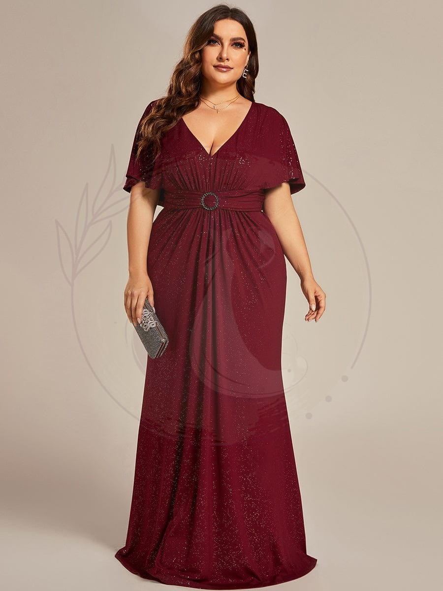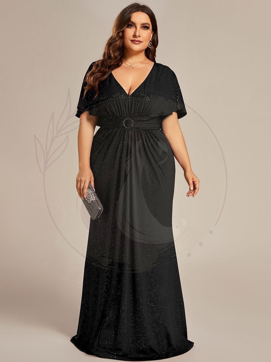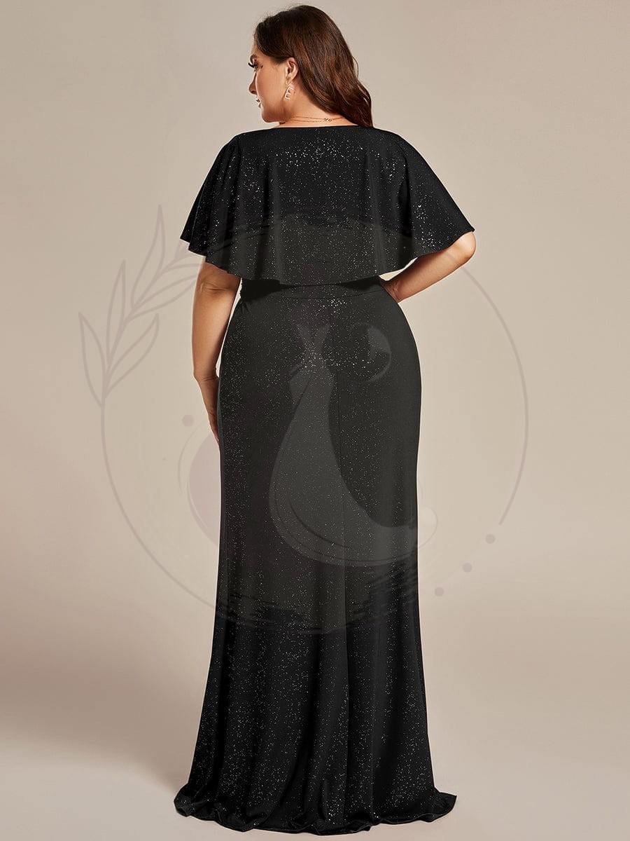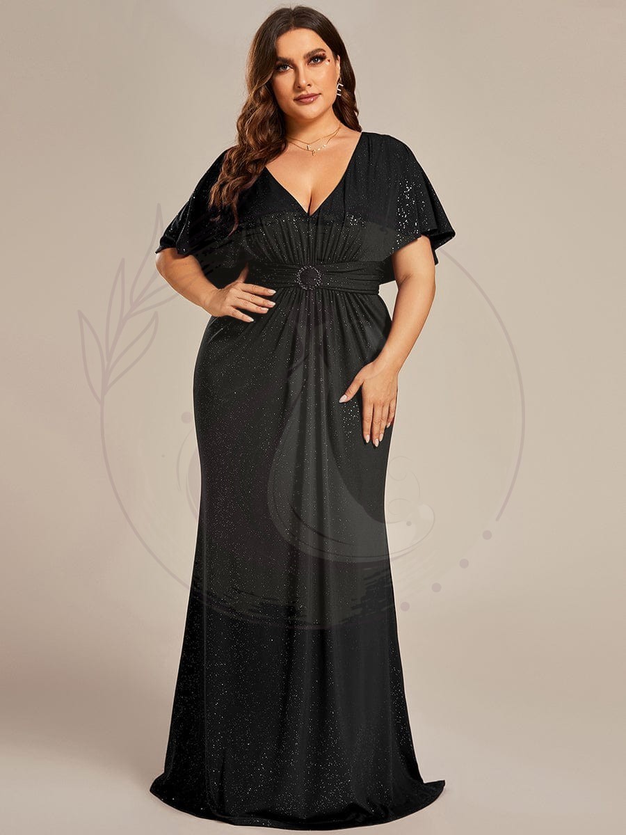 Robe de soirée sirène curvy à manches chauve-souris brillantes