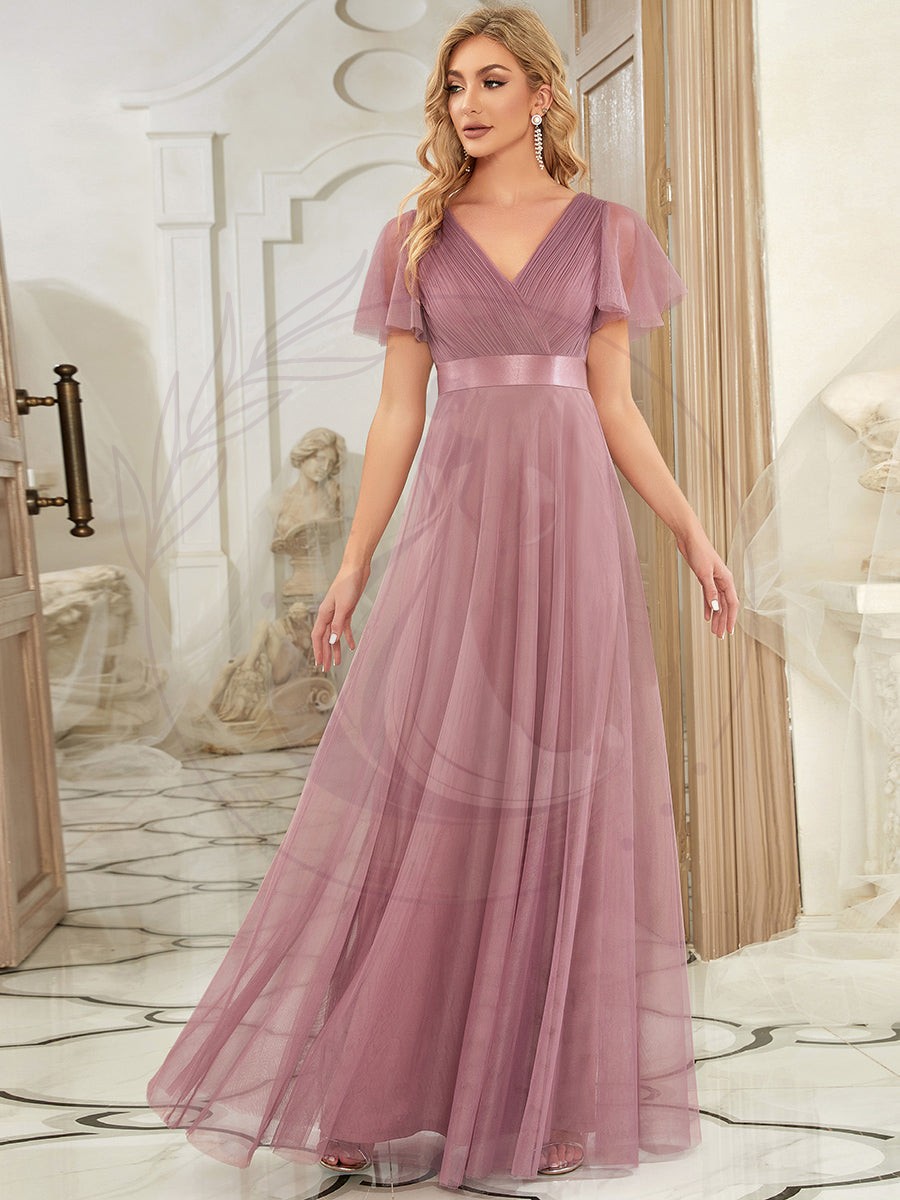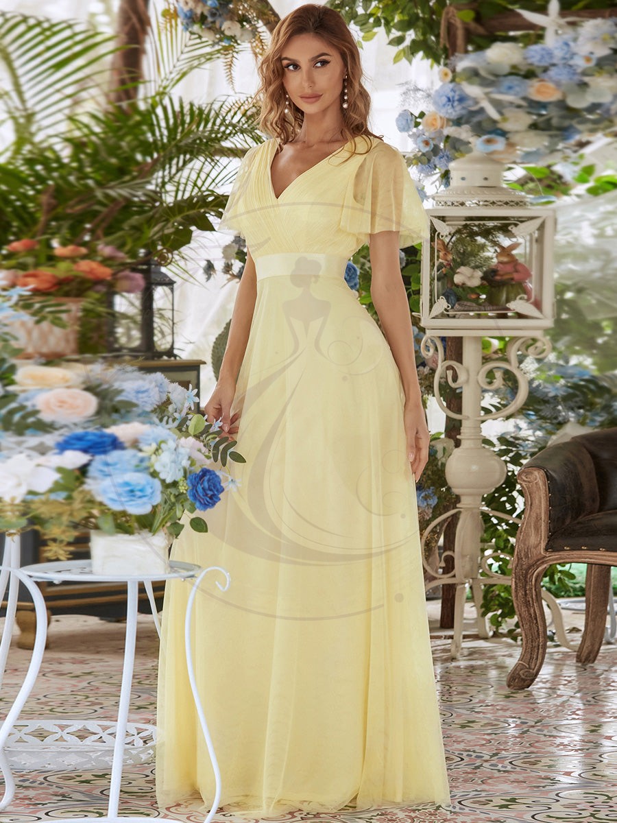 Cette robe de mariage pas cher romantique présente un décolleté en V profond, des manches papillon à taille empire et un ourlet subtil en tulle.Elle convient à la plupart des types de corps. Nous pensons que cette robe de soirée élégante est parfaite pour toutes les occasions formelles, qu’il s’agisse d’une soirée, d’un cocktail, d’un mariage, d’un bal de fin d’année ou d’une remise de diplômes !