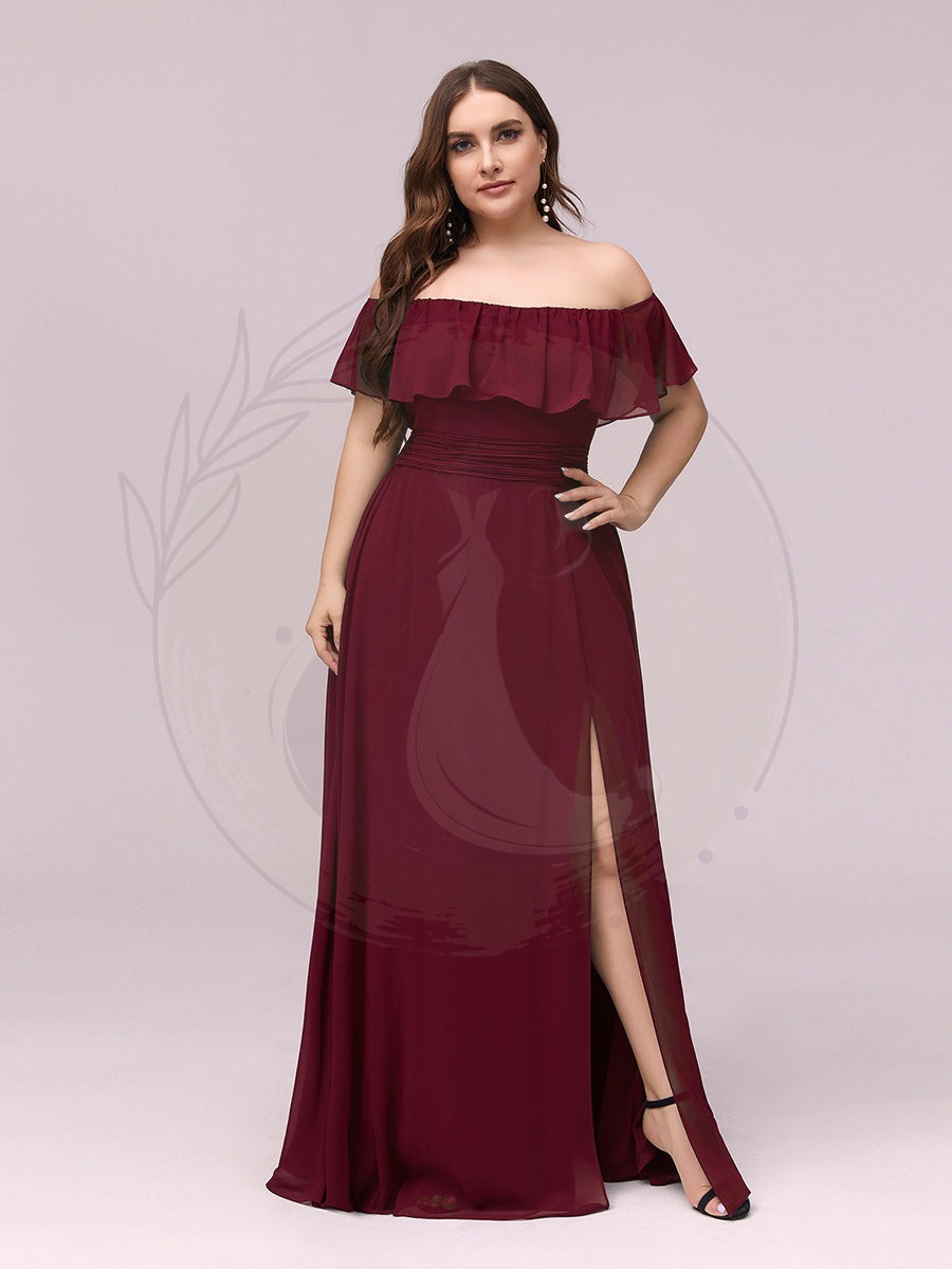 Cédez au charme de cette magnifique tenue de cérémonie doublée d’une aura romantique, caractérisée par son encolure bardot raffinée et sa jupe s’évasant gracieusement jusqu’au sol, ornée d’une élégante fente latérale qui laisse entrevoir la jambe. C’est l’option idéale pour se distinguer lors de mariages, soirées élégantes, galas, bals de fin d’année, célébrations de remise de diplômes ou pendant des vacances exceptionnelles.