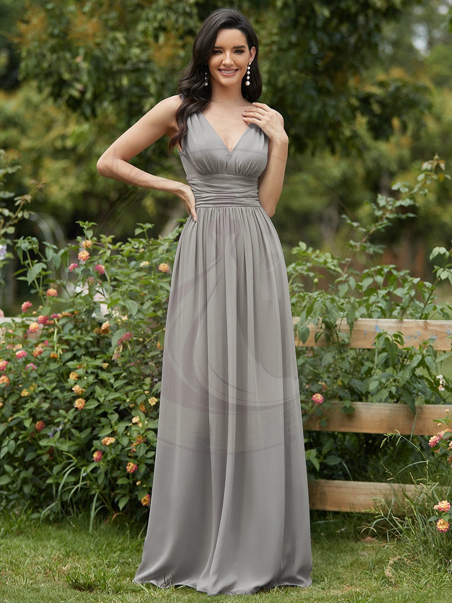 Robe demoiselle d’honneur élégant col en V A Line Boho Longue Femme