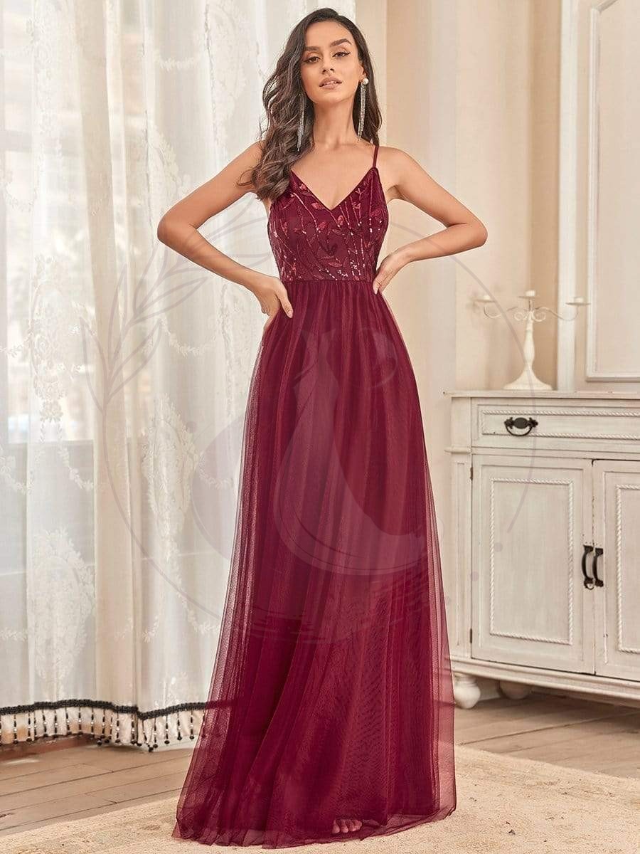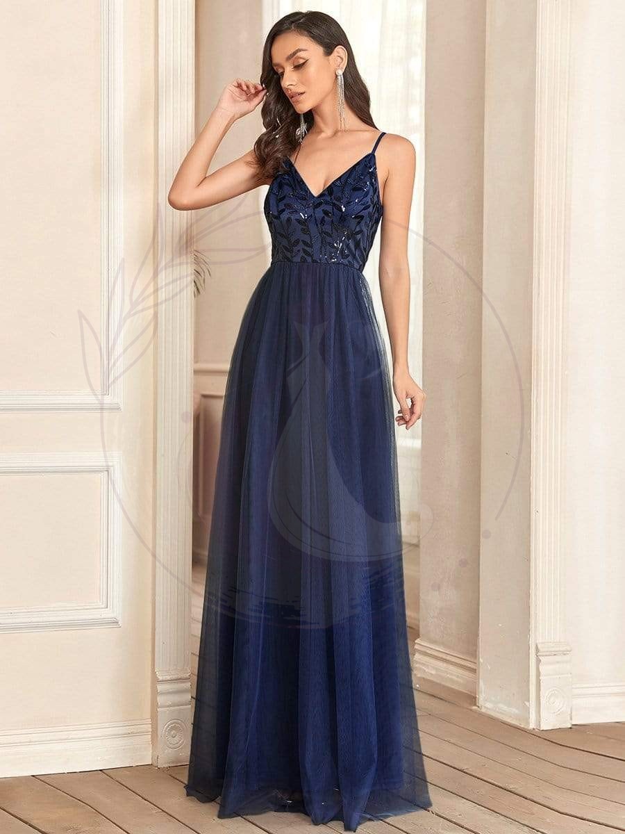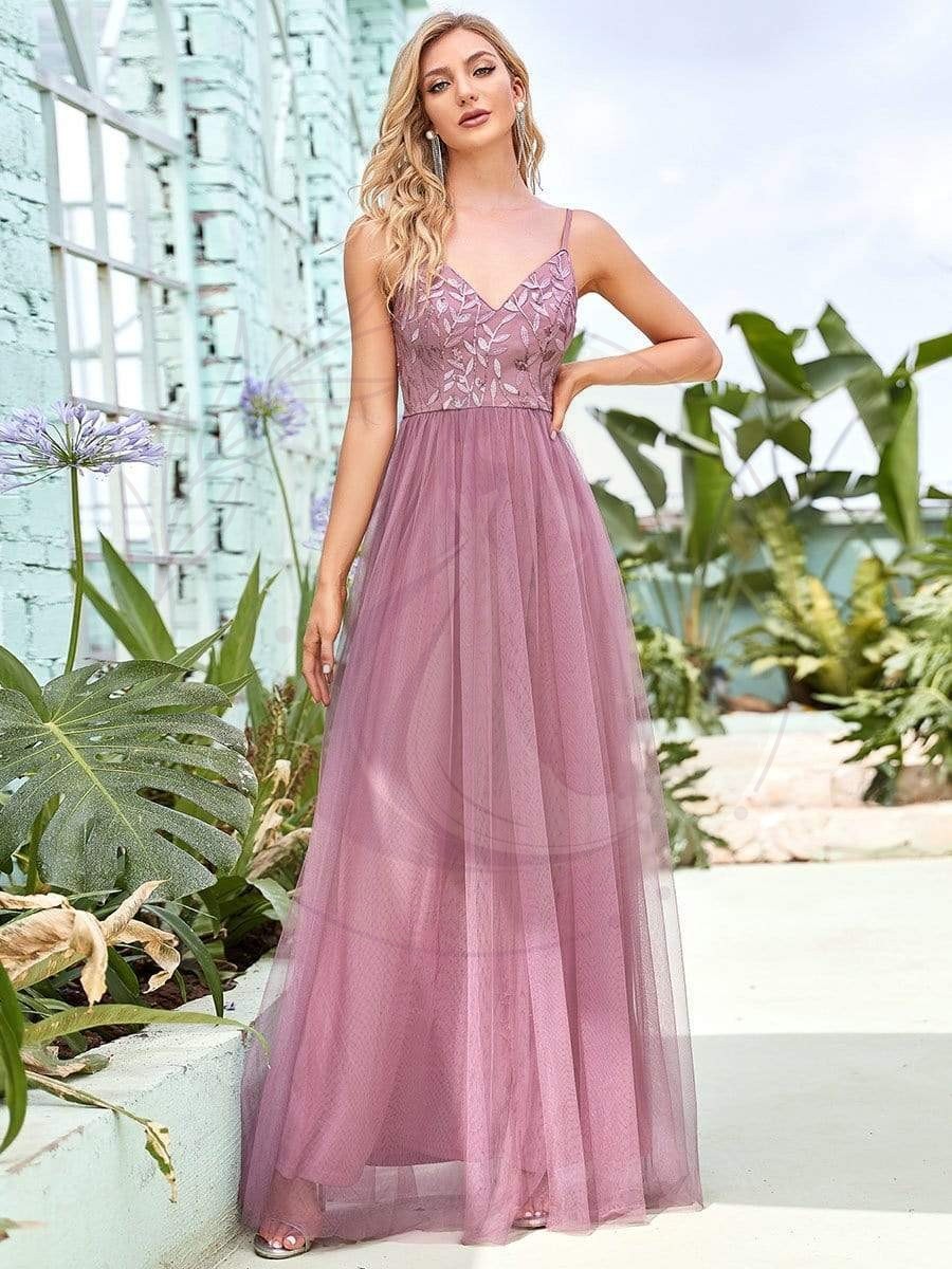 Découvrez l’élégance incarnée avec cette somptueuse robe de demoiselle d’honneur. Conçue pour séduire, elle arbore des fines bretelles et une gracieuse coupe longue traînant jusqu’au sol. Son col V plongeant et sa découpe subtile au dos apporte une touche de finesse et de sophistication, convenant à merveille pour tout événement chic, de jour comme de nuit. Avec un corsage orné de délicats motifs floraux brodés et superposé de voilage translucide sur un fond opaque, cette tenue est un vrai bijou pour celles qui ont une silhouette menue ou moyenne.