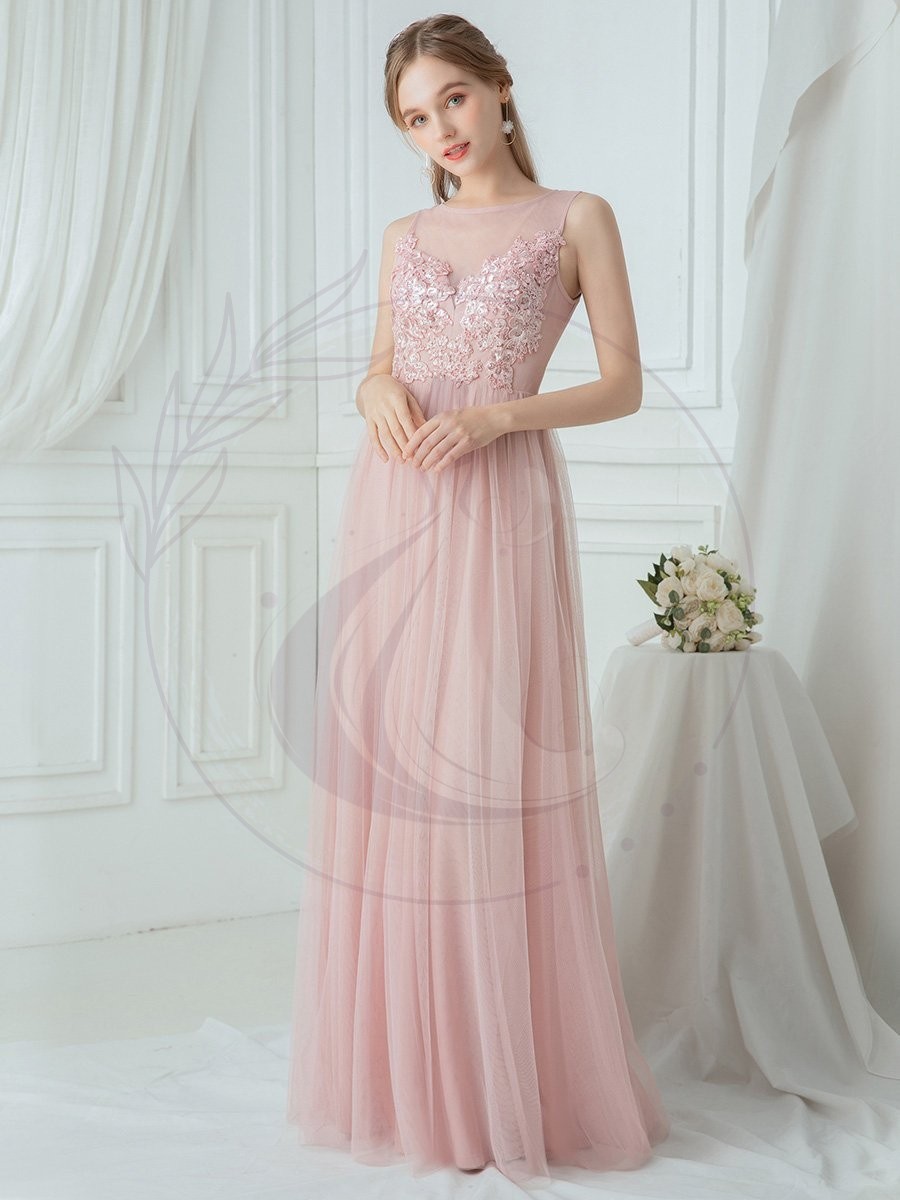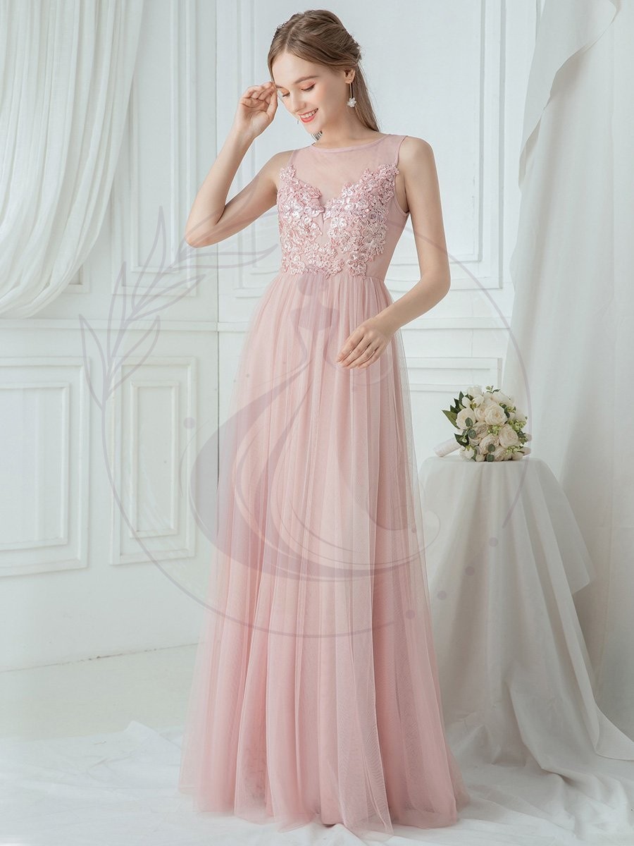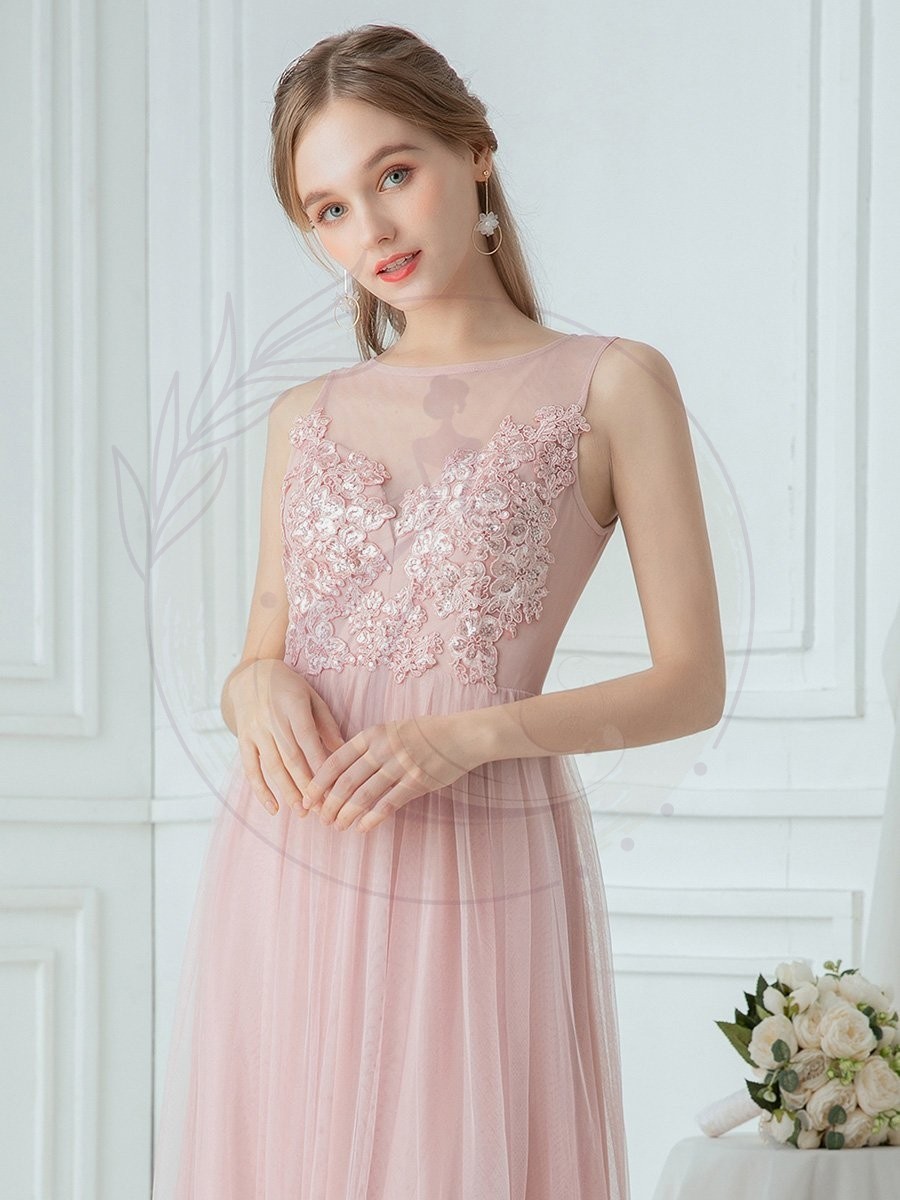 Robe Demoiselle d’Honneur Romantique à Col Rond Transparent en Tulle