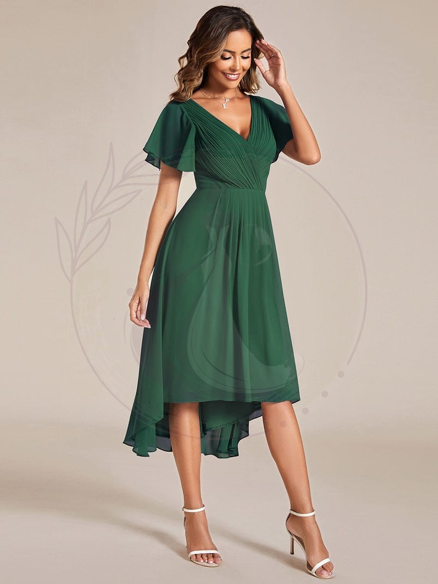 Robe d’invité de mariage chic à col en V