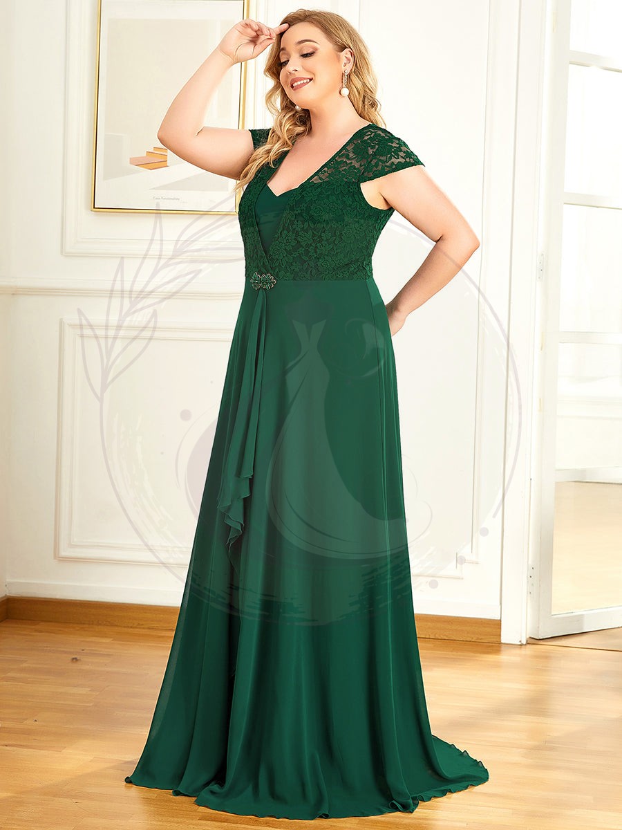 Avec son encolure plongeante en forme de cœur, ses petites manches en fine dentelle et sa jupe évasée et aérienne, cette sublime tenue de cérémonie pour femmes rondes deviendra à coup sûr un élément phare de votre penderie pour de nombreuses occasions festives. Qu’il s’agisse d’un mariage, d’une soirée chic, d’un cocktail, d’un bal de fin d’année, d’une soirée de gala, d’un baptême,ou même du jour de la rentrée ou d’une cérémonie de remise de diplômes, cette robe est l’atout élégance par excellence pour toute célébration officielle!