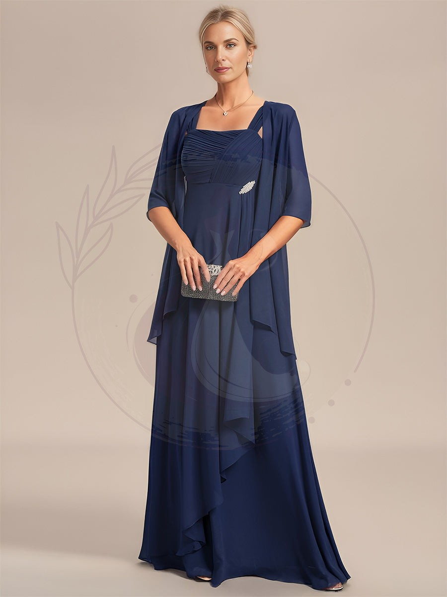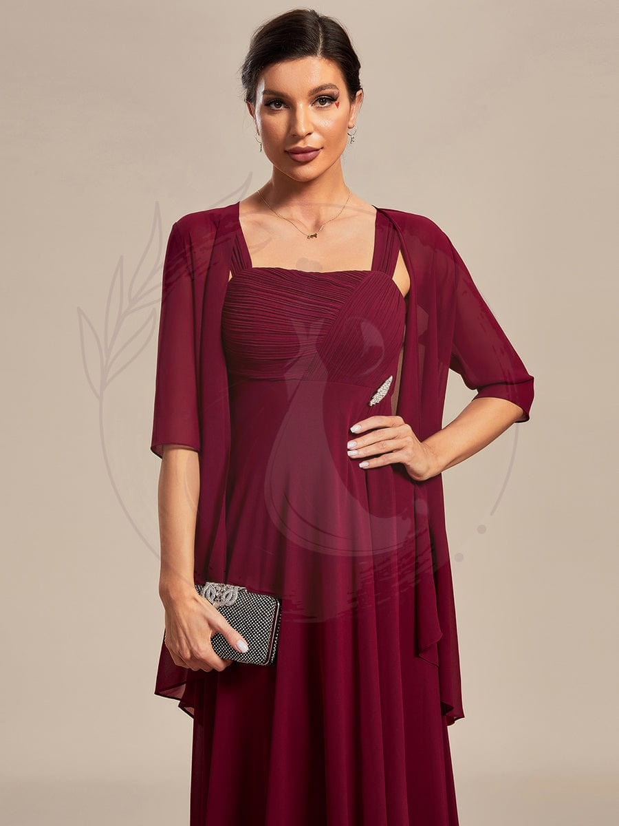 Robe mère de la mariée deux pièces en mousseline à encolure carrée