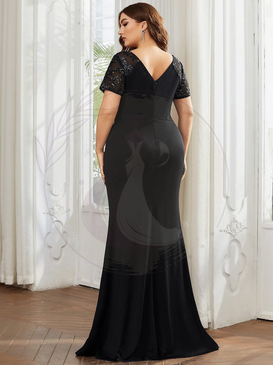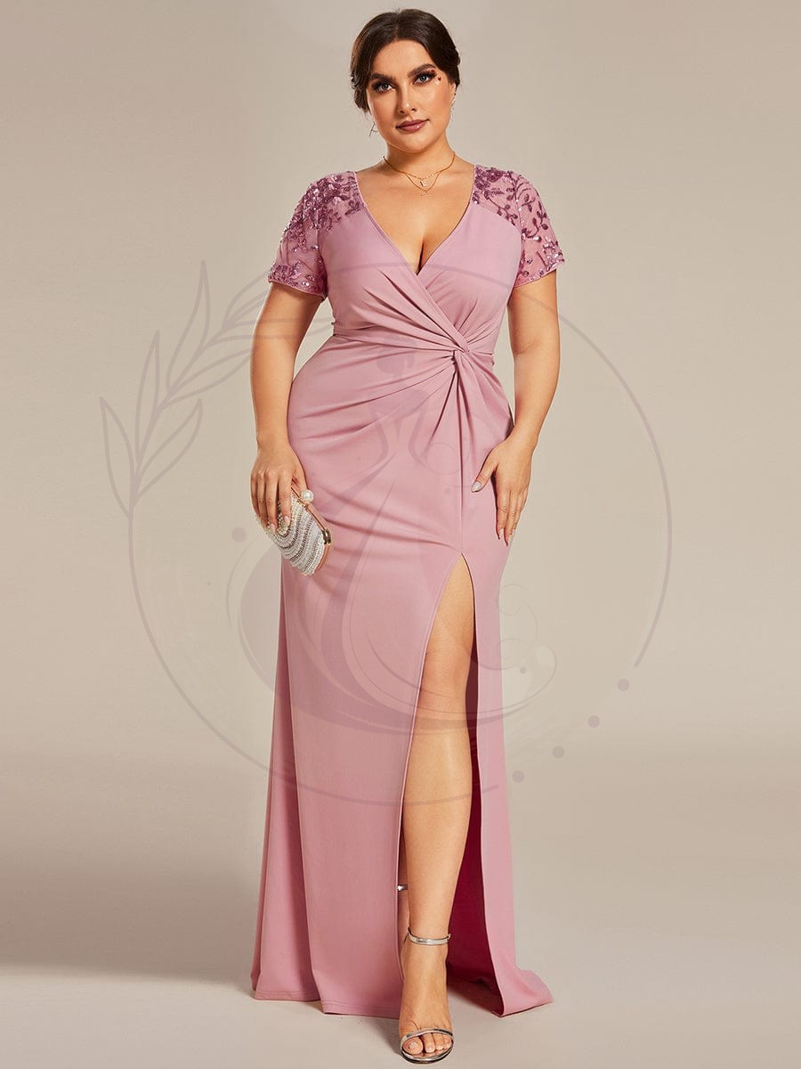 Robe Mère de la mariée Manches courtes Encolure V profonde Fente Grande Taille