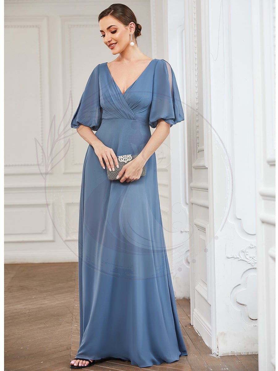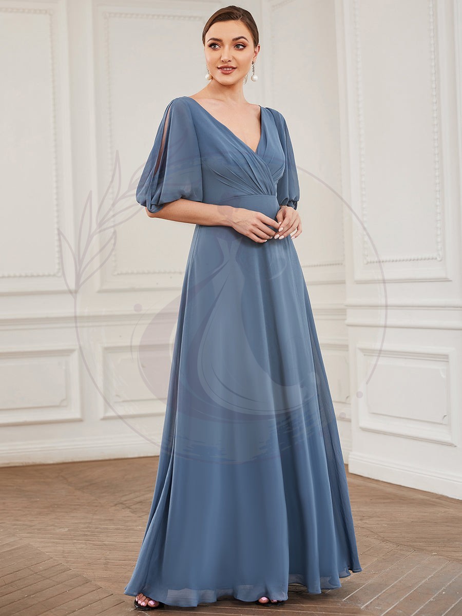 Robe mère de la mariée plissée Manches fendues Col V Mousseline