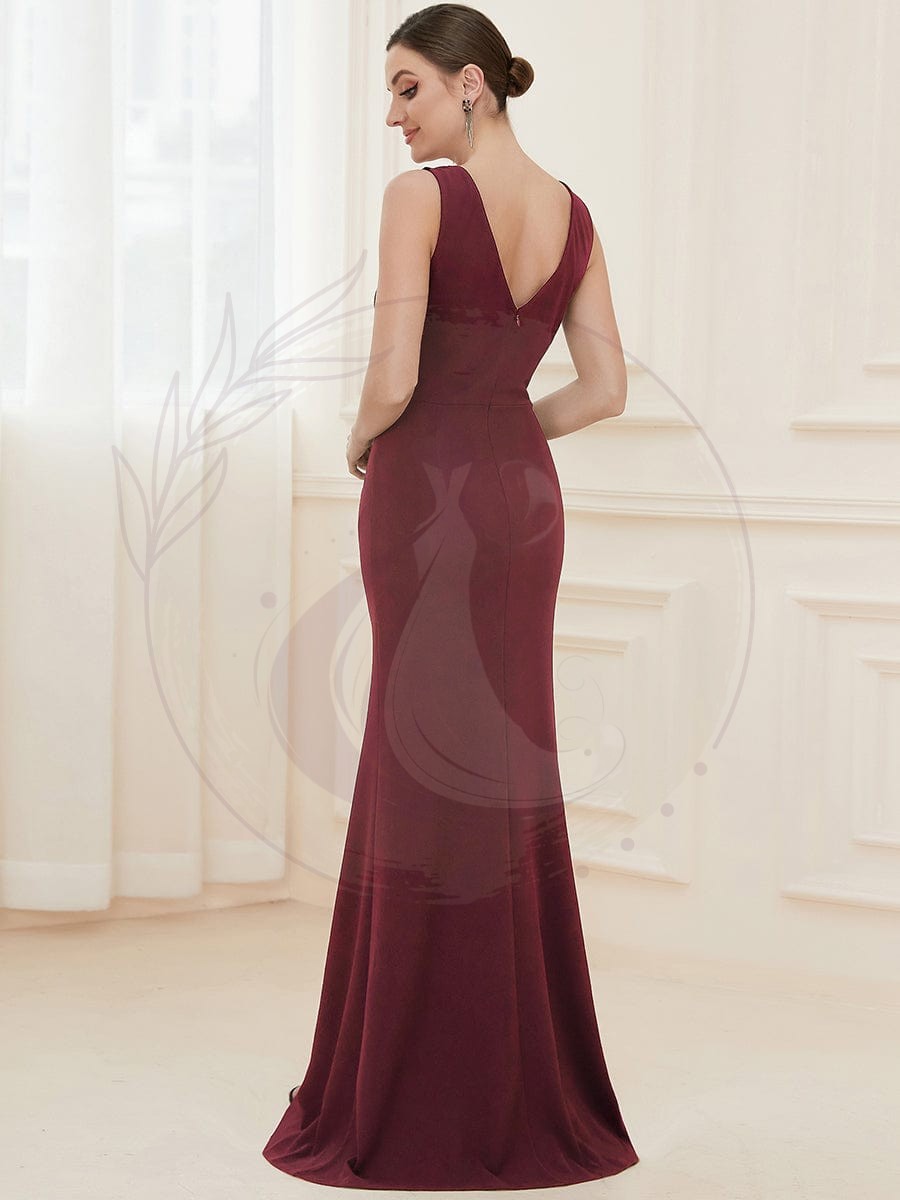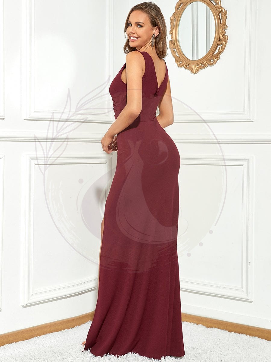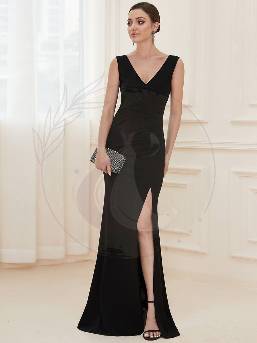 Sublimez chaque instant précieux vêtu d’une élégance raffinée avec notre robe longue de gala en maille. Ce modèle se distingue par son haut raffiné sans manches, son encolure plongeante en forme de V et une fente avant qui mettra en valeur vos chaussures préférées pour une allure élégante de la tête aux pieds.