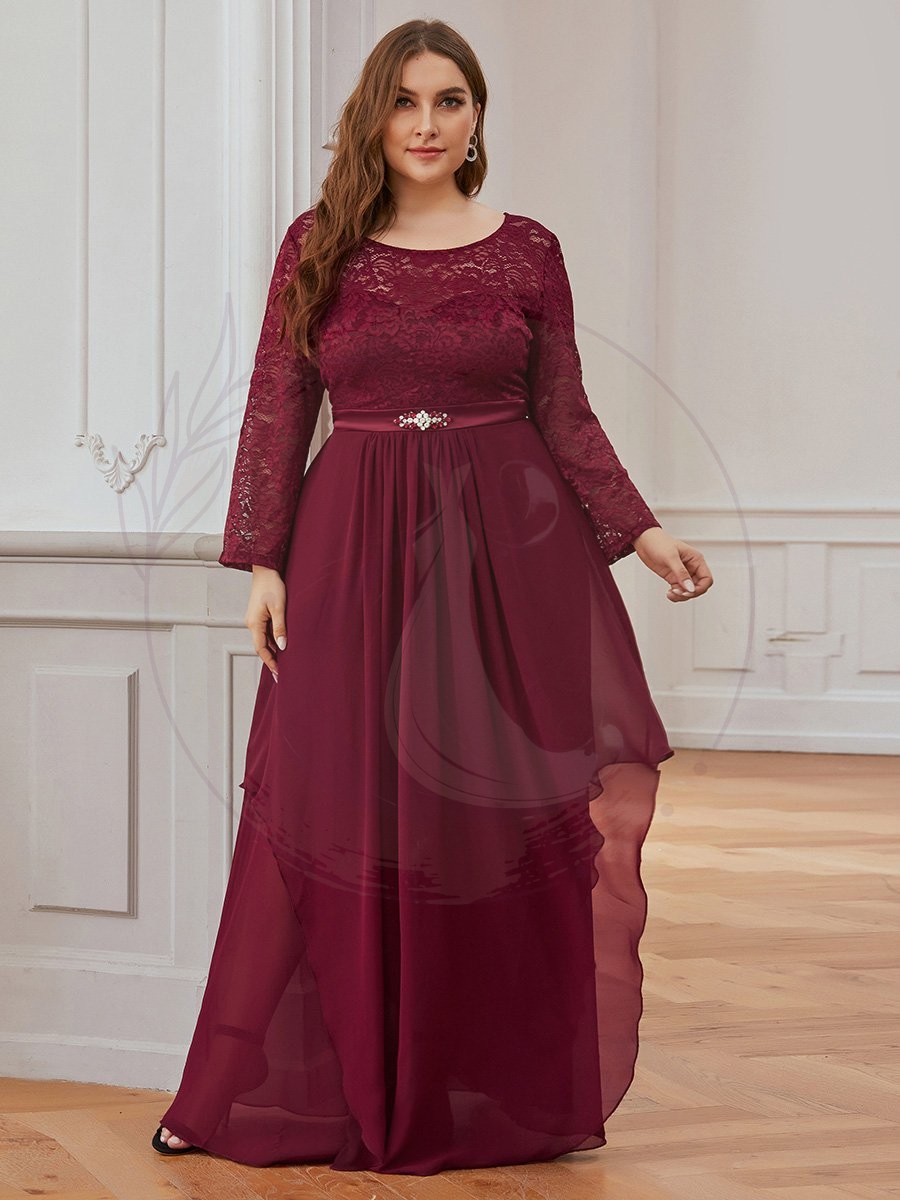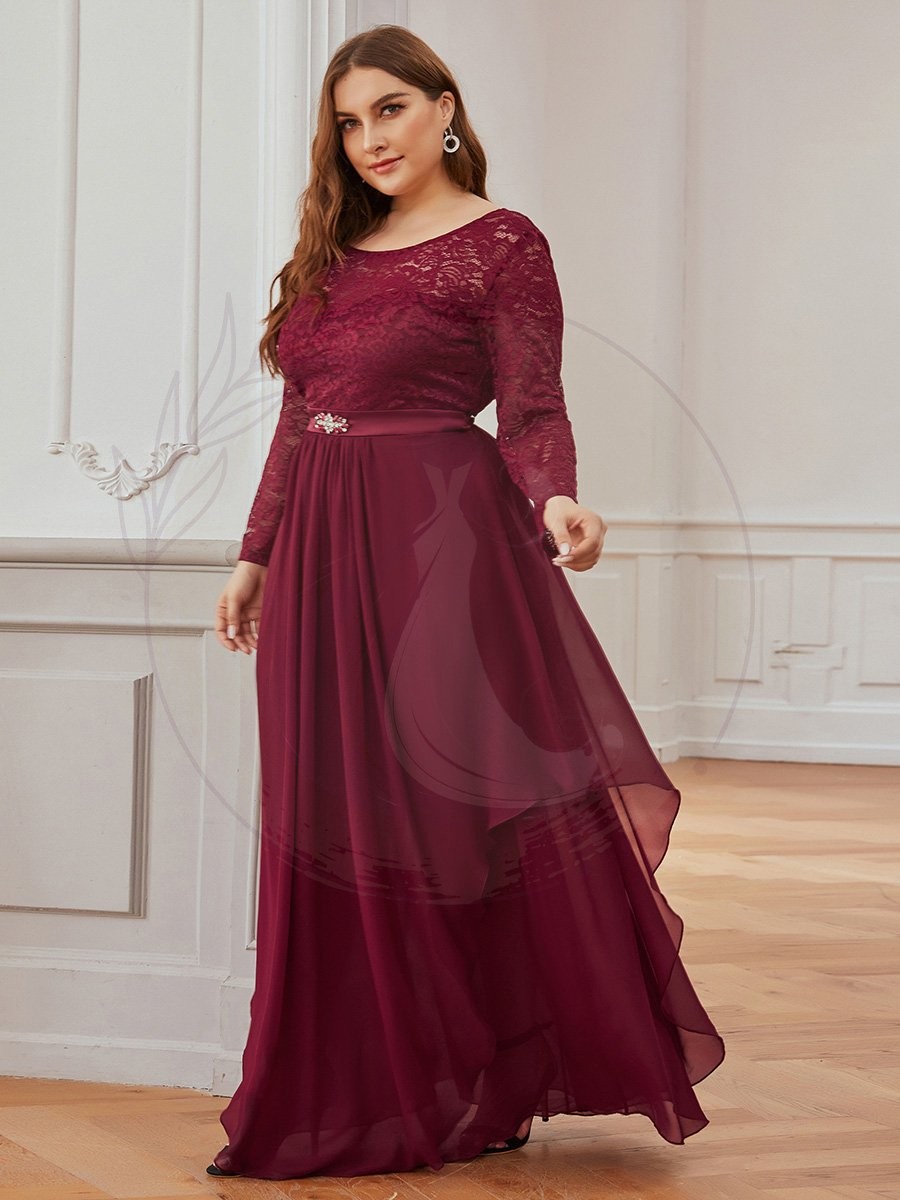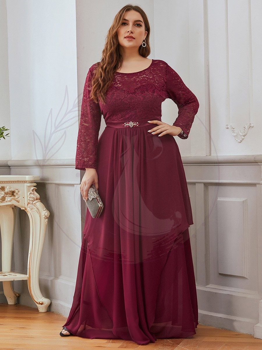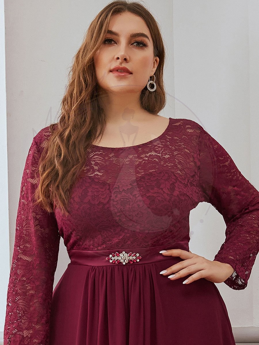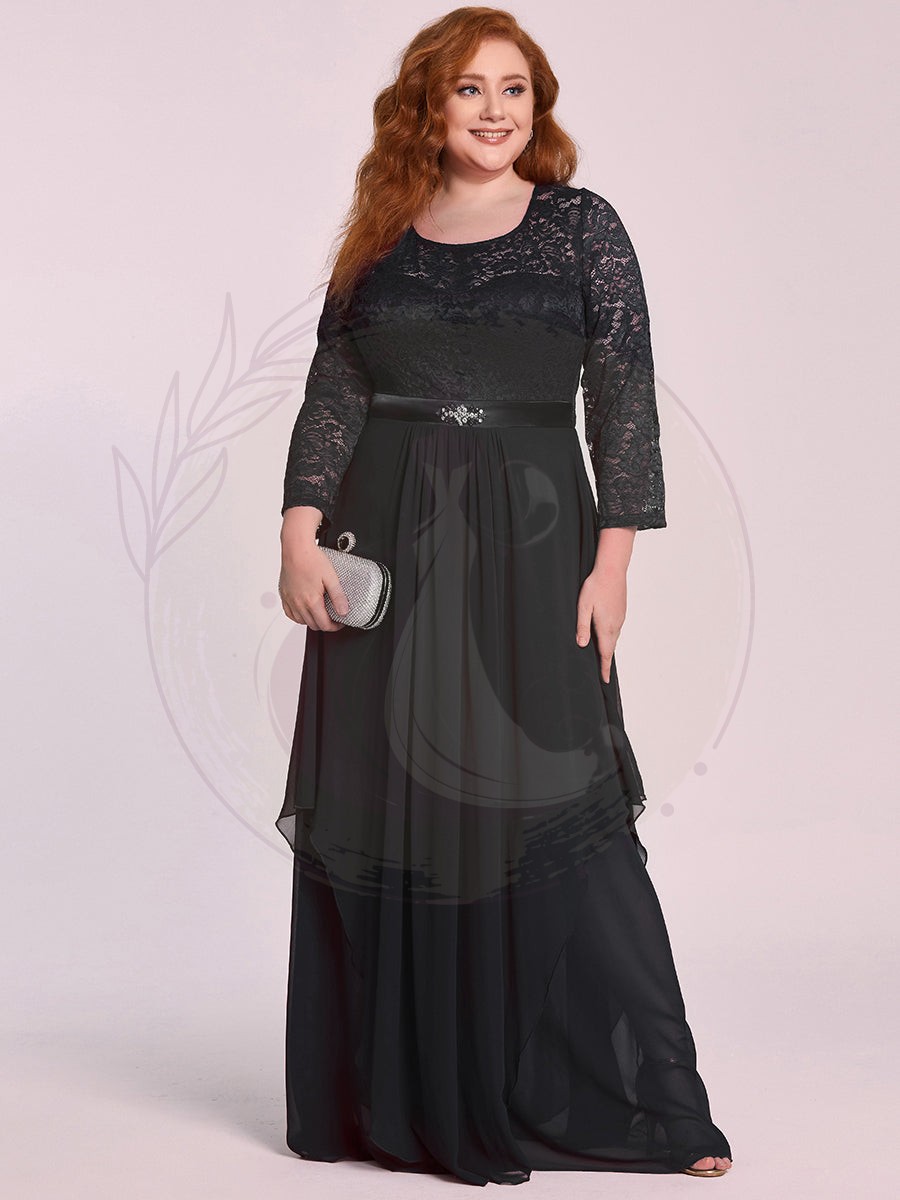 Grande taille Maxi longue dentelle Illusion Robes de mère de la mariée