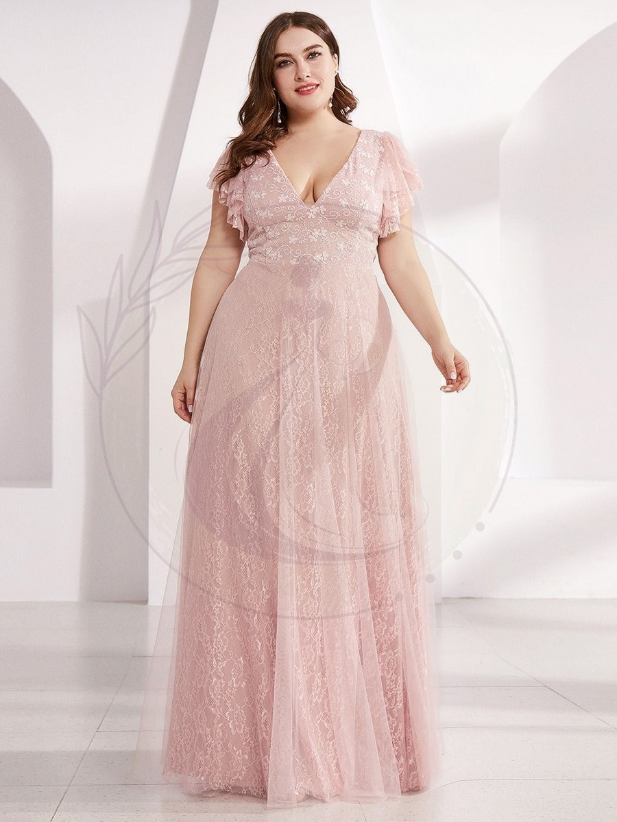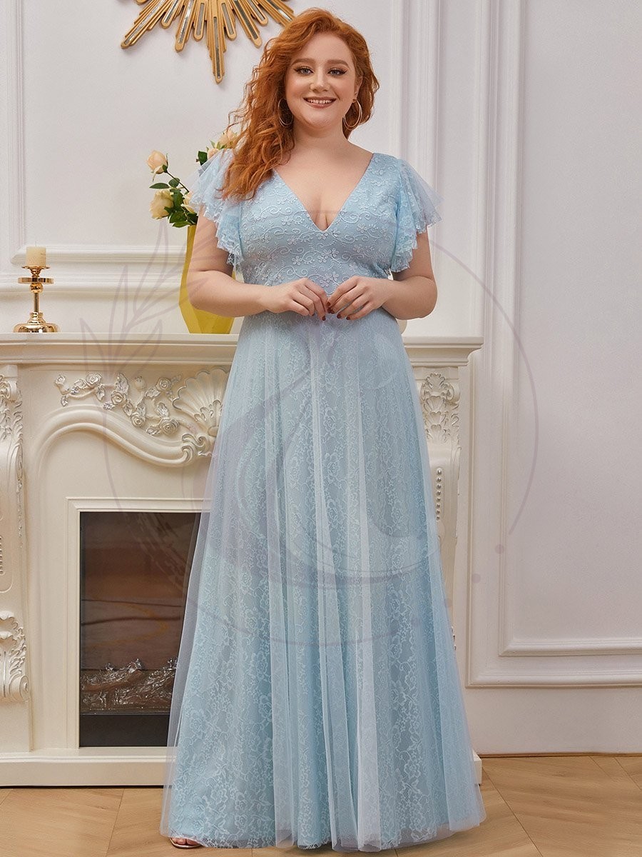 Avec son double décolleté plongeant en forme de V et ses manches ornées de volants, ce modèle capte le regard et élance la silhouette, la rendant ainsi plus svelte. Cette tenue de mariage grande taille se pare également d’une sublime jupe mariant la dentelle et le tulle, évoquant une allure féerique et vous plongeant dans la peau d’une véritable princesse.