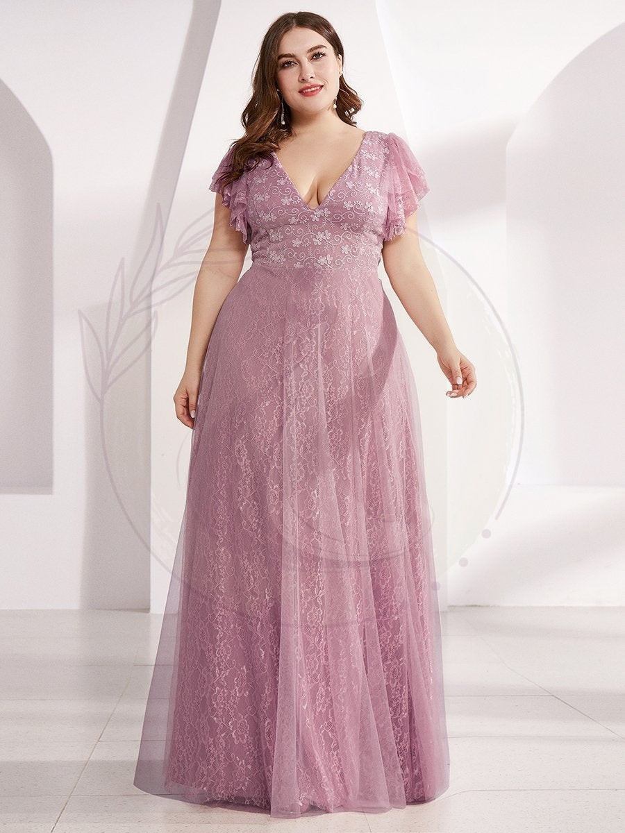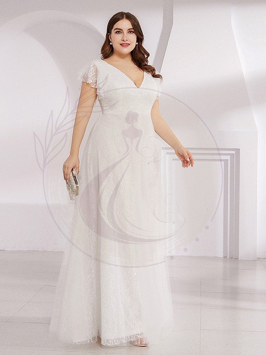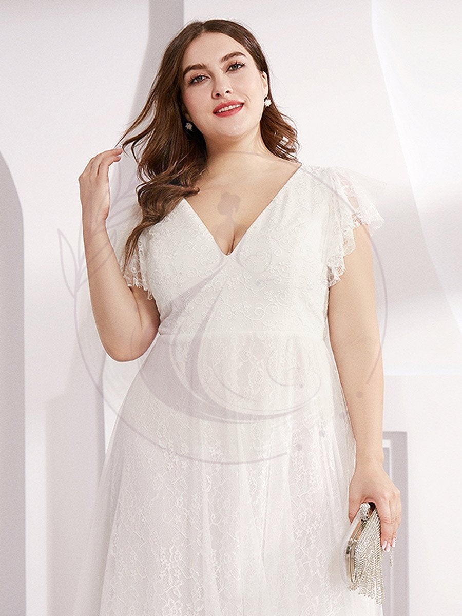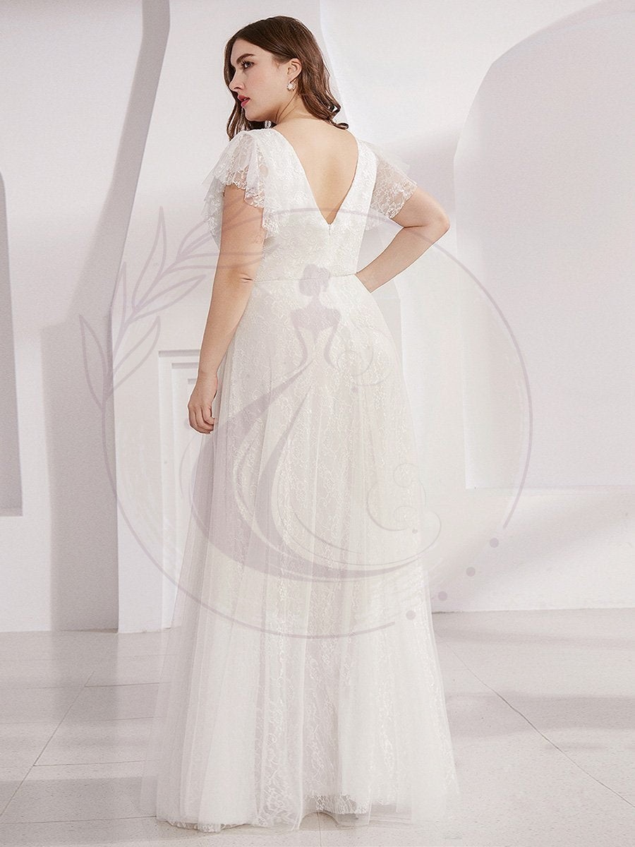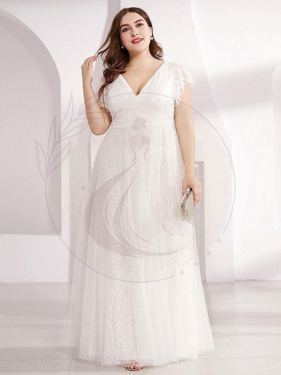 Robes de mariée Maxi Long Plus Size en dentelle avec manches à volants