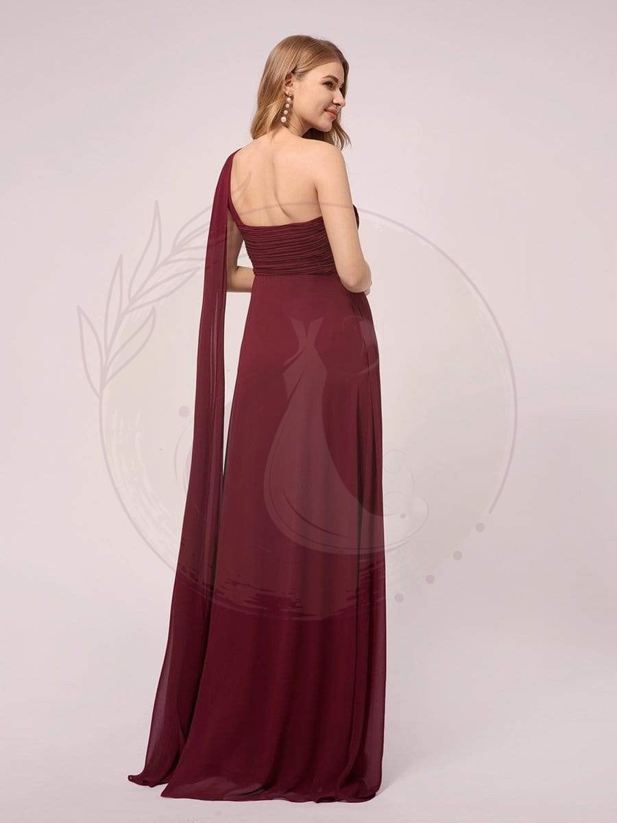 Captez l’attention lors de vos événements spéciaux avec cette charmante robe de grossesse pour demoiselle d’honneur, un modèle singulier à une épaule agrémenté d’un flot élégant. Son design évasé, ses plis délicats sur le corsage en font un véritable atout de charme. Conjuguant élégance et ajustement parfait, cette tenue vous mettra en valeur de façon impeccable.