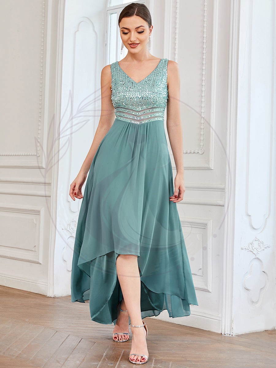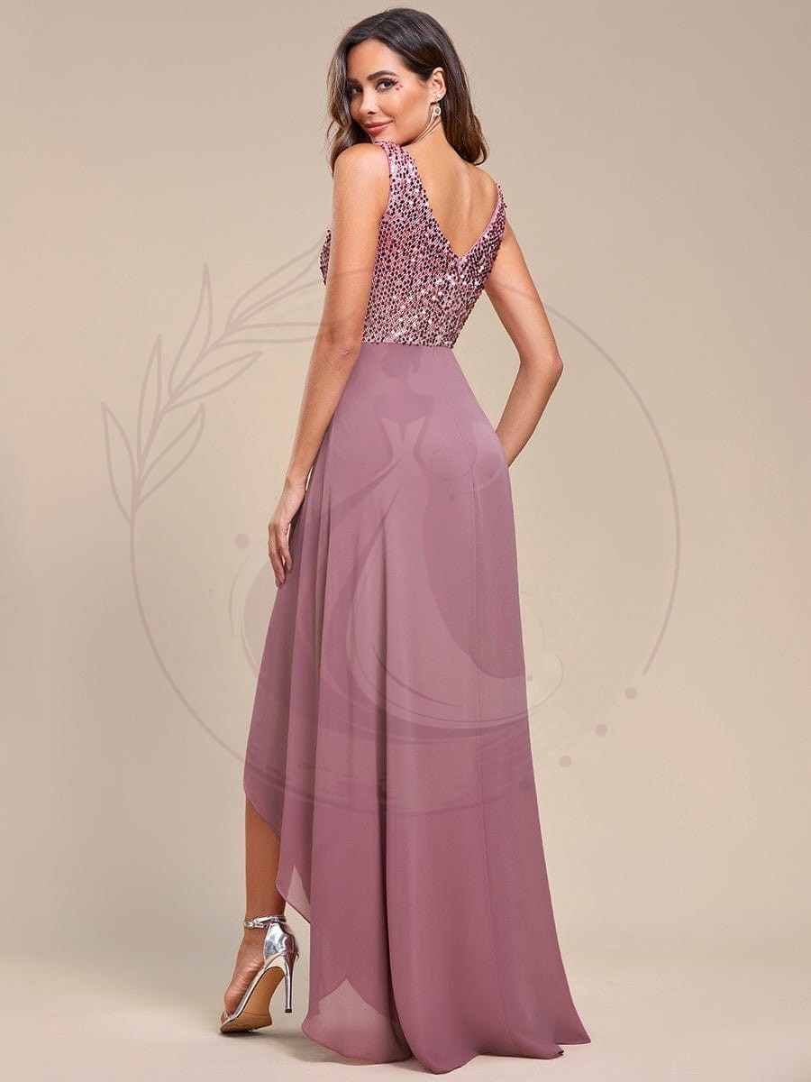 Robes de soirée sexy en mousseline de soie maxi haut-bas avec paillettes