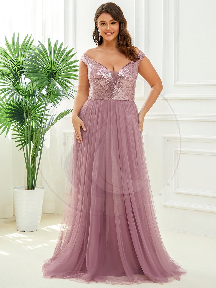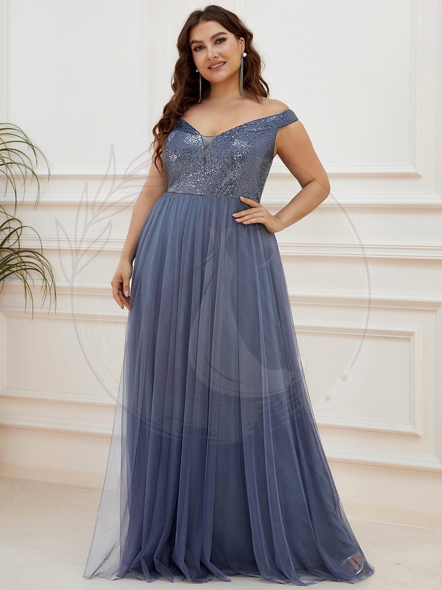 Superbe robe de soirée Grande taille en tulle et paillettes sans manches