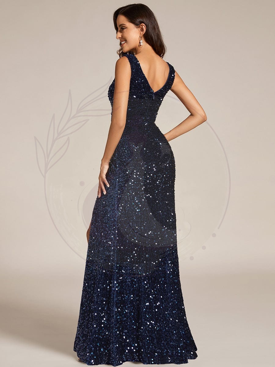 Taille personnalisée Robe de soirée longue sirène à encolure en V Sequins