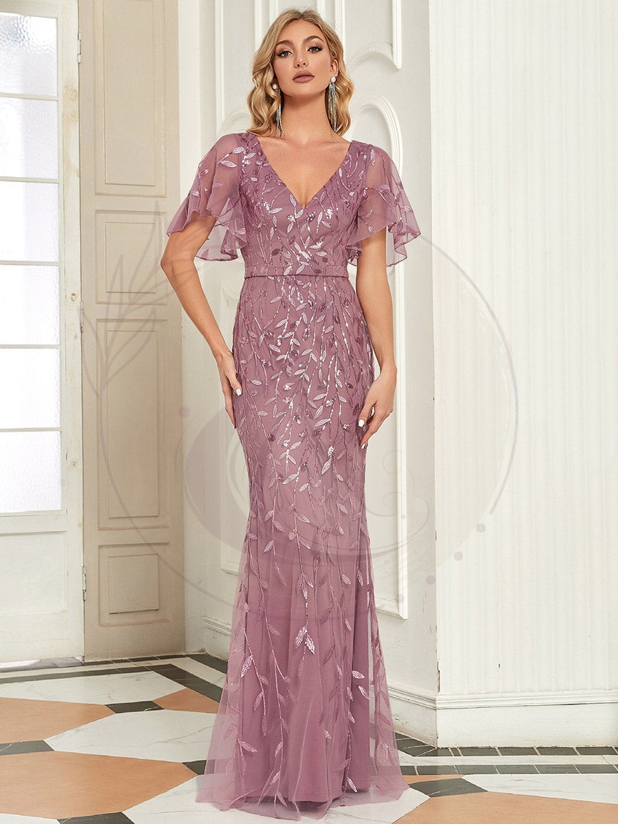 Transformez-vous en héroïne de conte de rêve en choisissant cette robe de gala au design féérique. Avec sa coupe élancée effet sirène, ses voluptueuses manches à volants et son élégant ceinturage marquant la silhouette, cette création est synonyme de grâce. En la revêtant, soyez prête à susciter l’envie des autres convives. Idéale pour des occasions prestigieuses telles que mariages, soirées cocktail, bals ou encore cérémonies de remise de diplômes, cette robe incarne le summum de l’élégance pour événements formels.