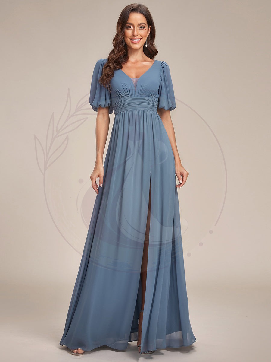 Taille personnalisée Robe de soirée Mousseline Manches courtes col en V