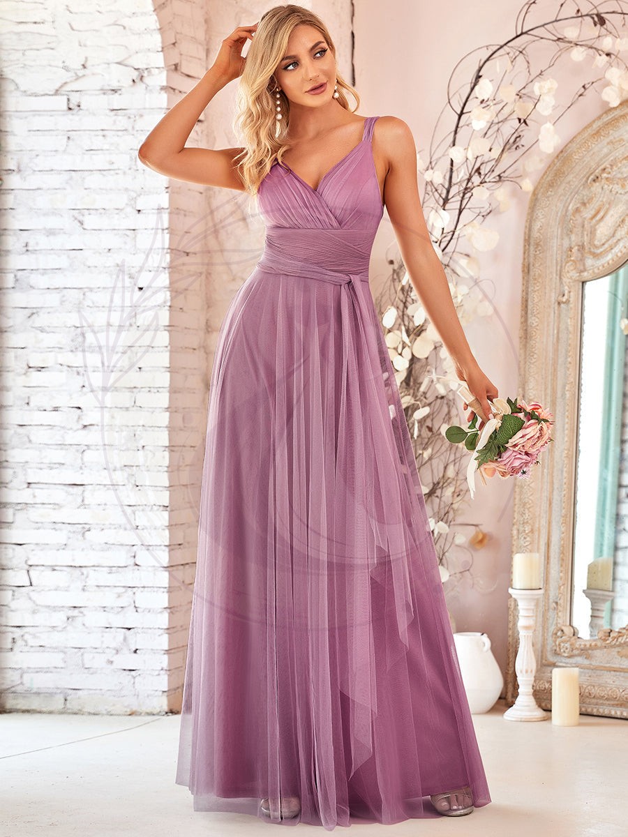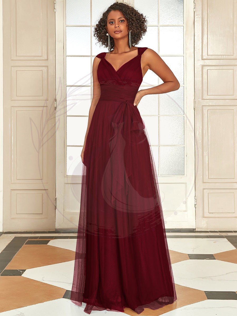 Taille personnalisée Robes de soirée en tulle col en V Cérémonie Demoiselle d’honneur
