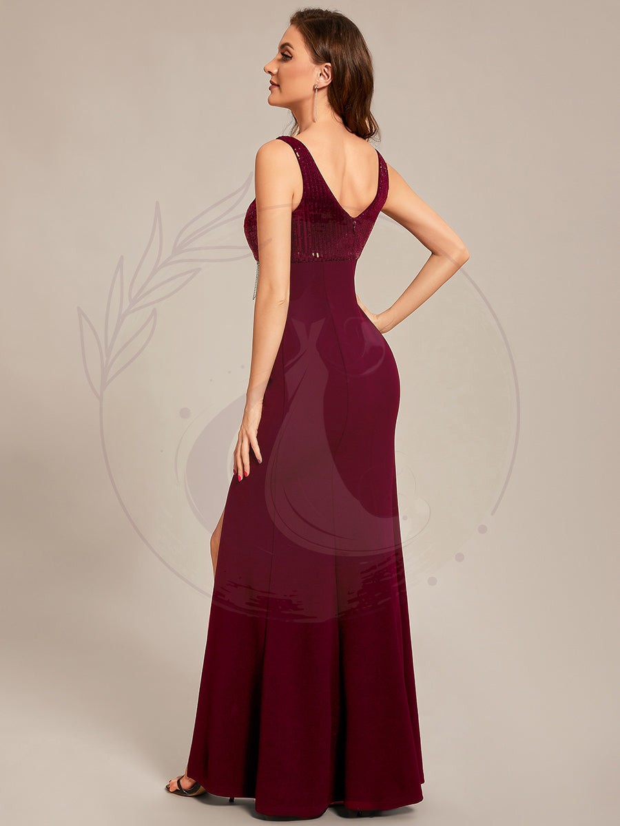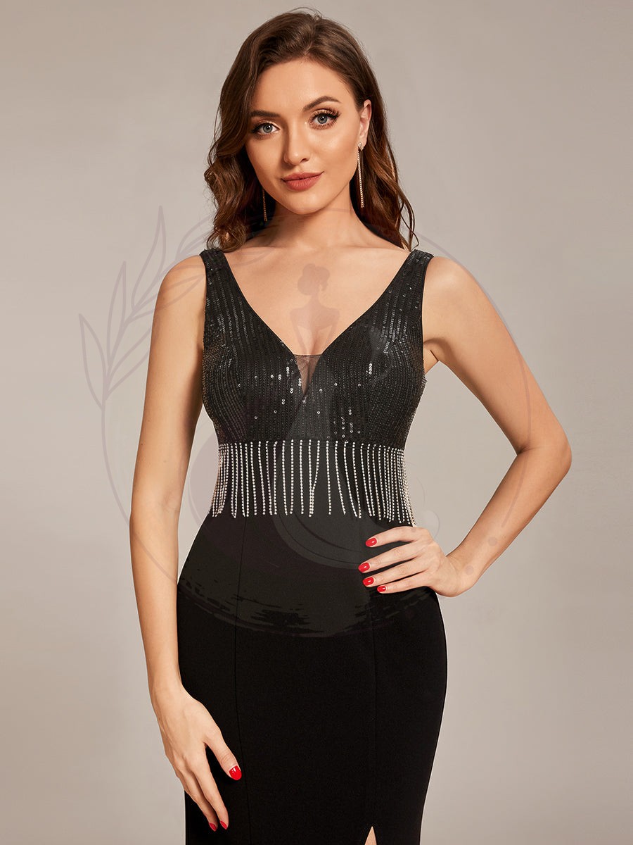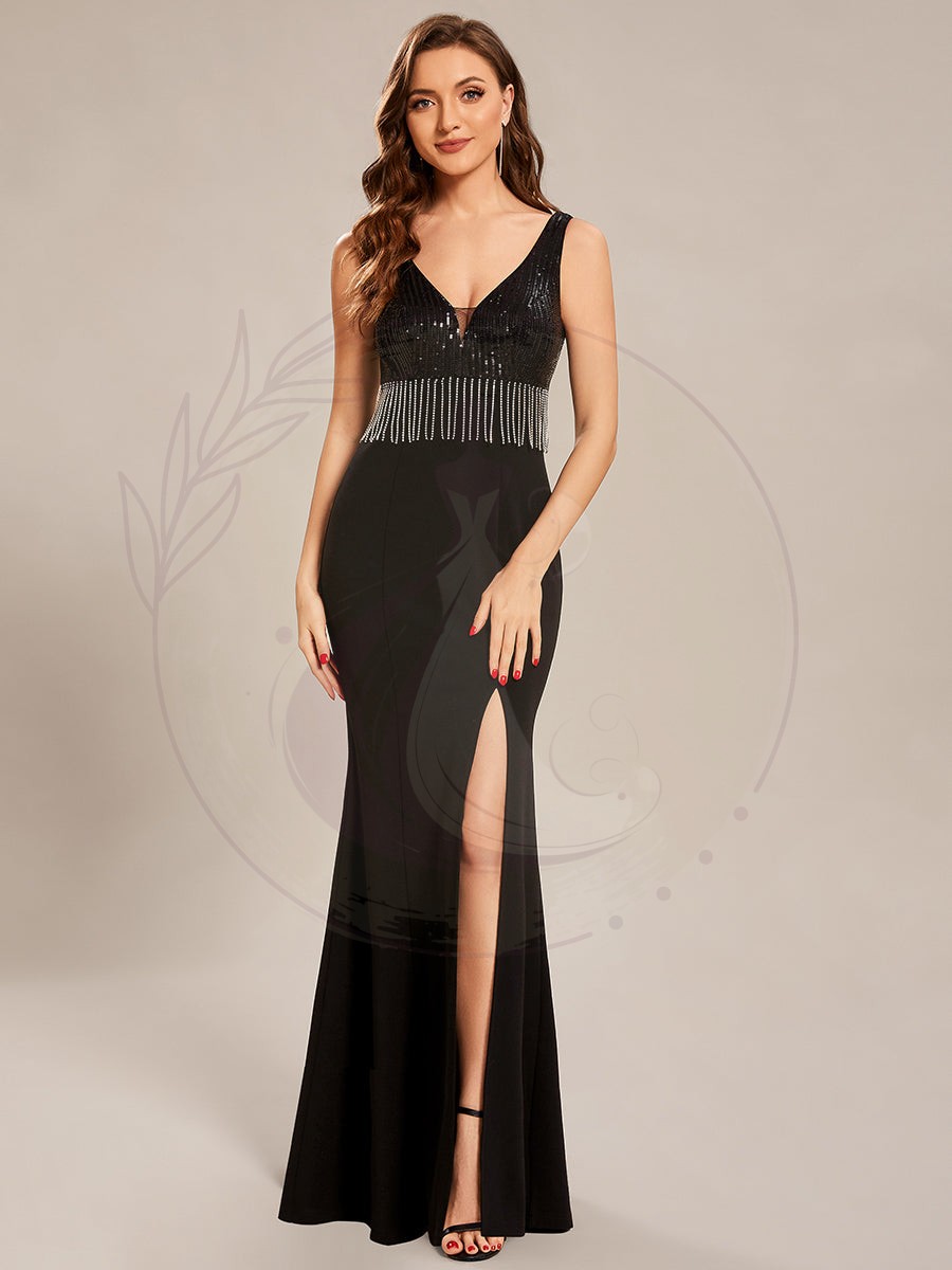 Maxi robes de mère de la mariée à sequins fendus et col en V