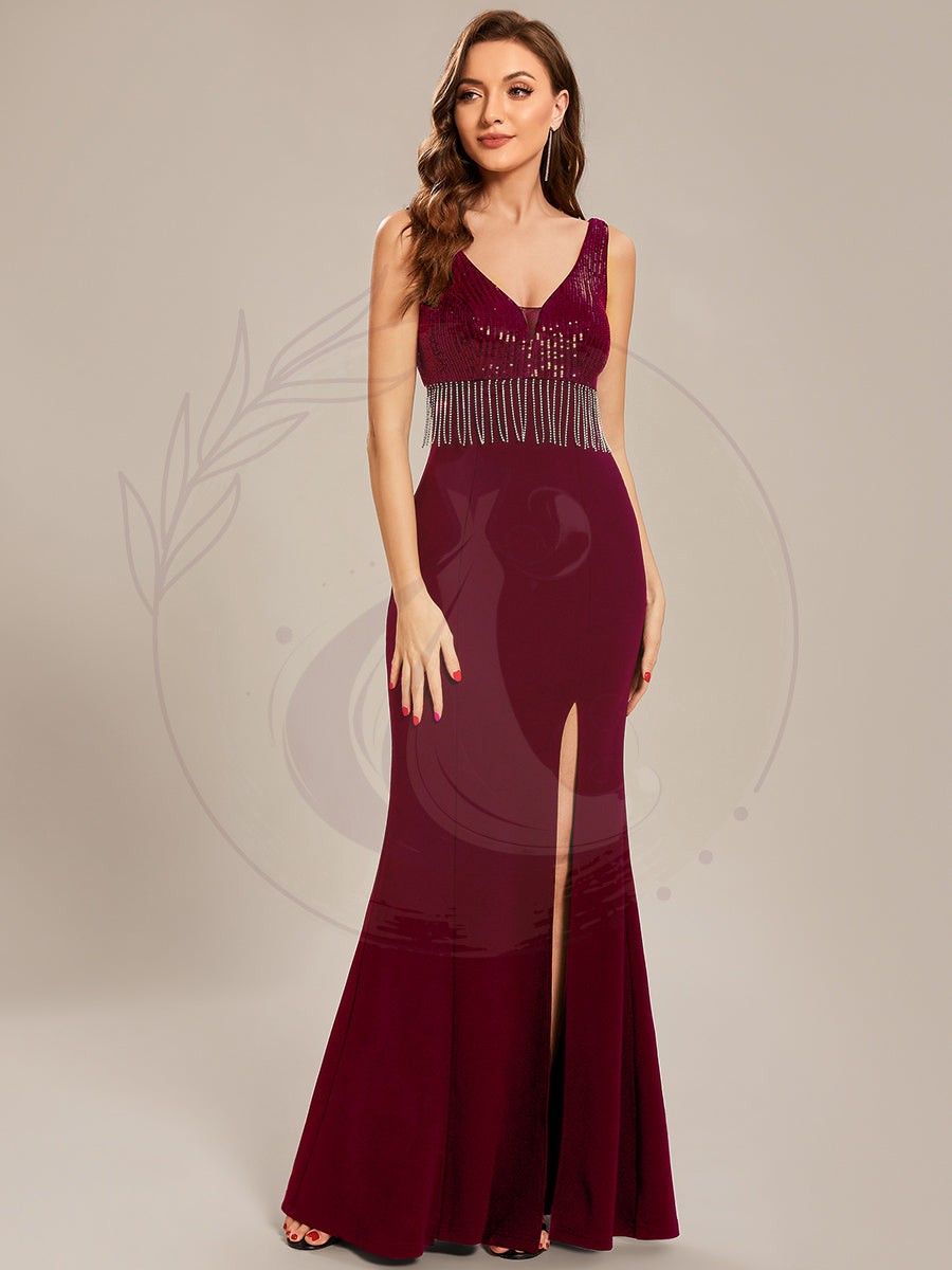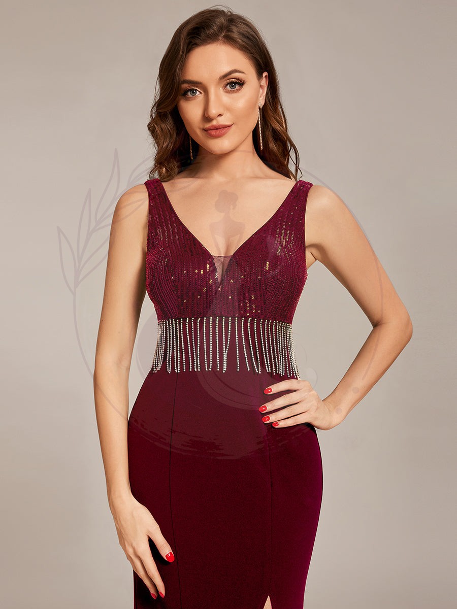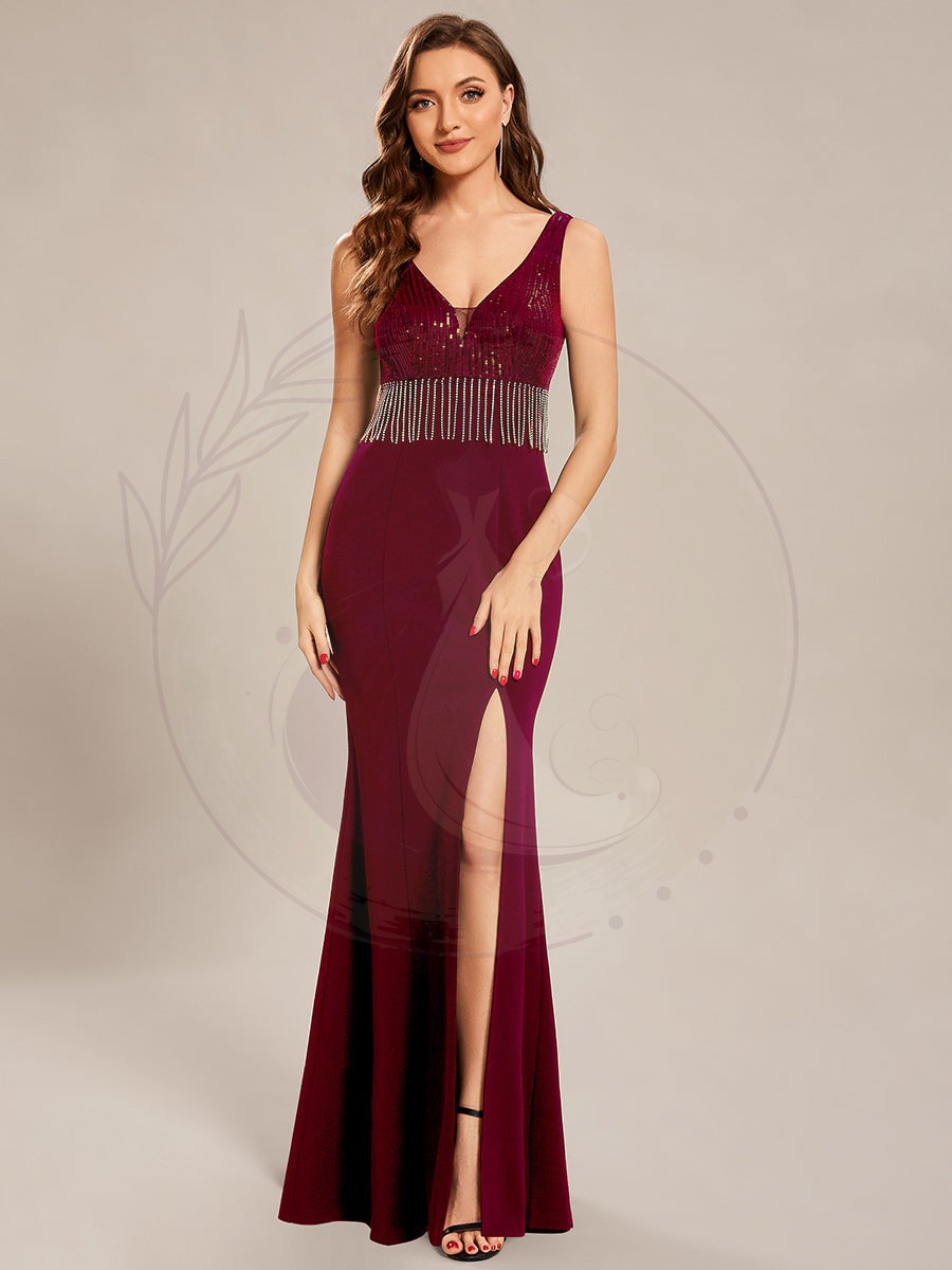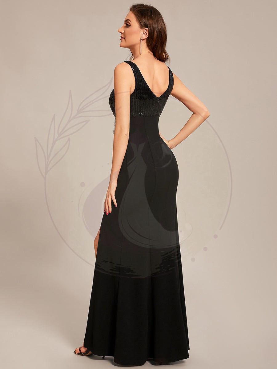 Maxi robes de mère de la mariée à sequins fendus et col en V