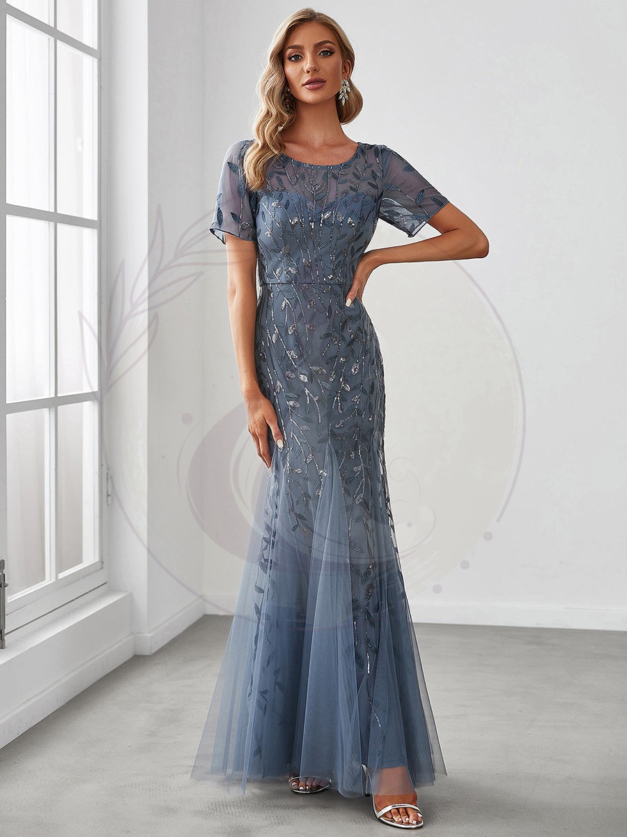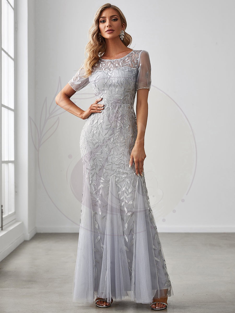 Taille personnalisée robes Longues Sirène en Tulle à Imprimé Floral et Paillettes
