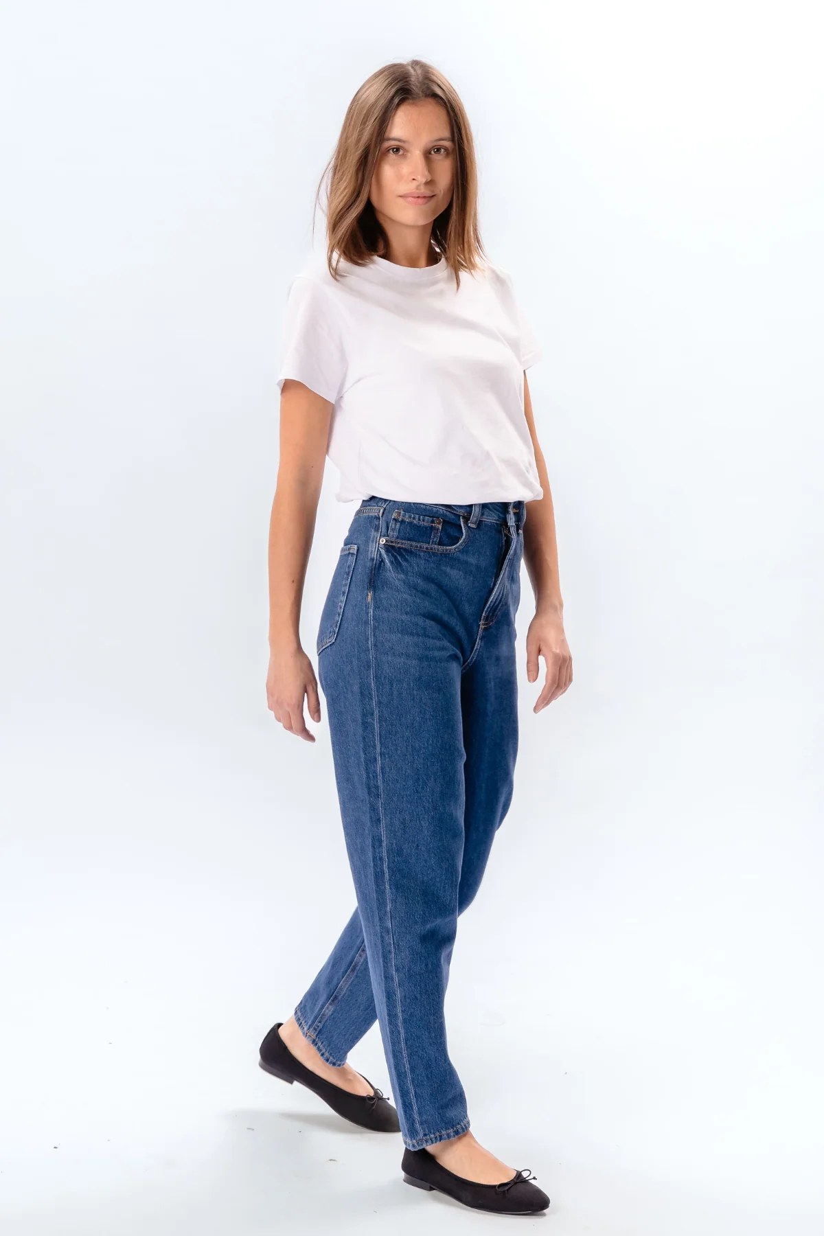 - Coupe: Classique mom Le jean a une taille haute et une coupe décontractée au niveau des hanches et des cuisses.