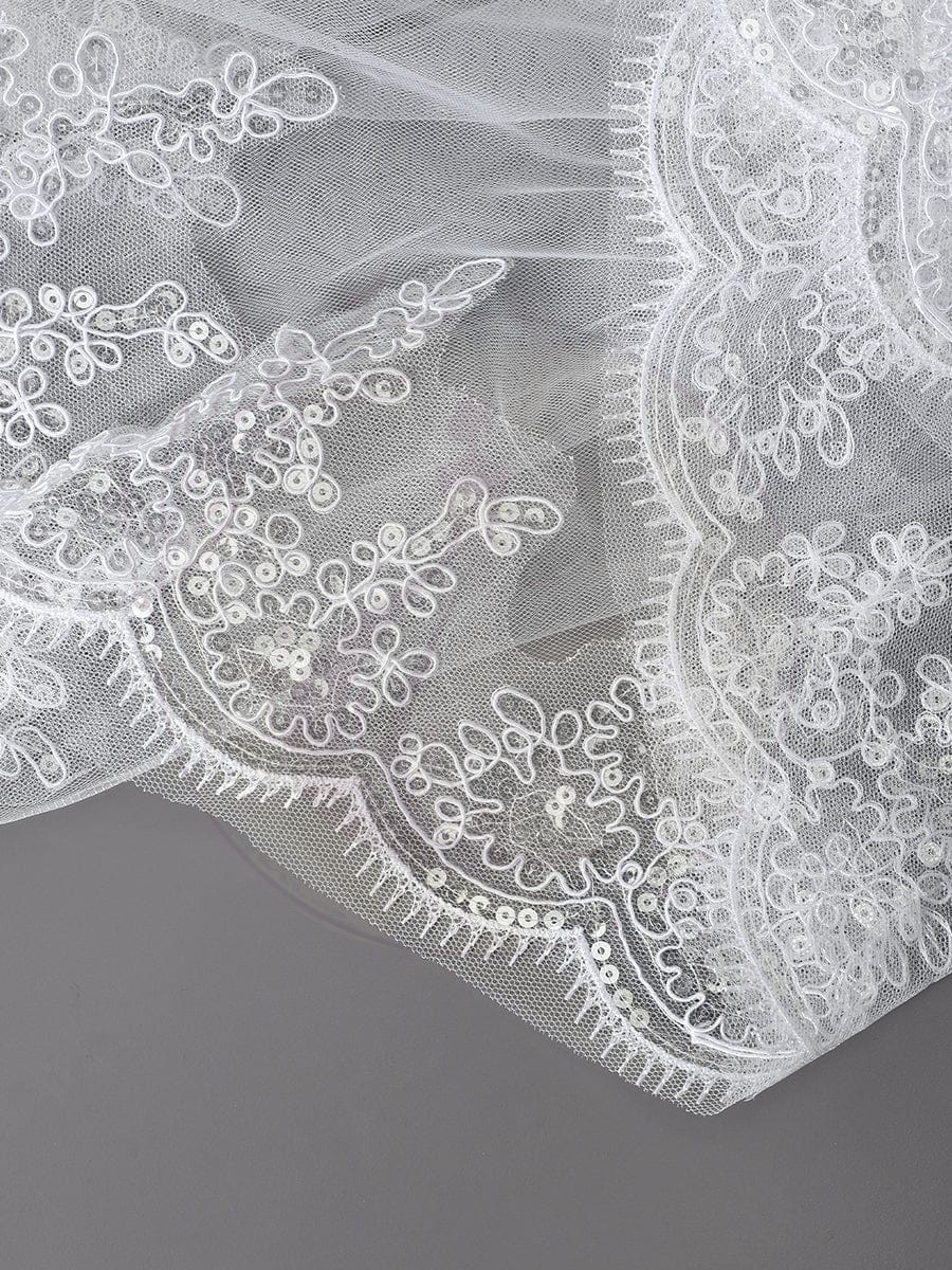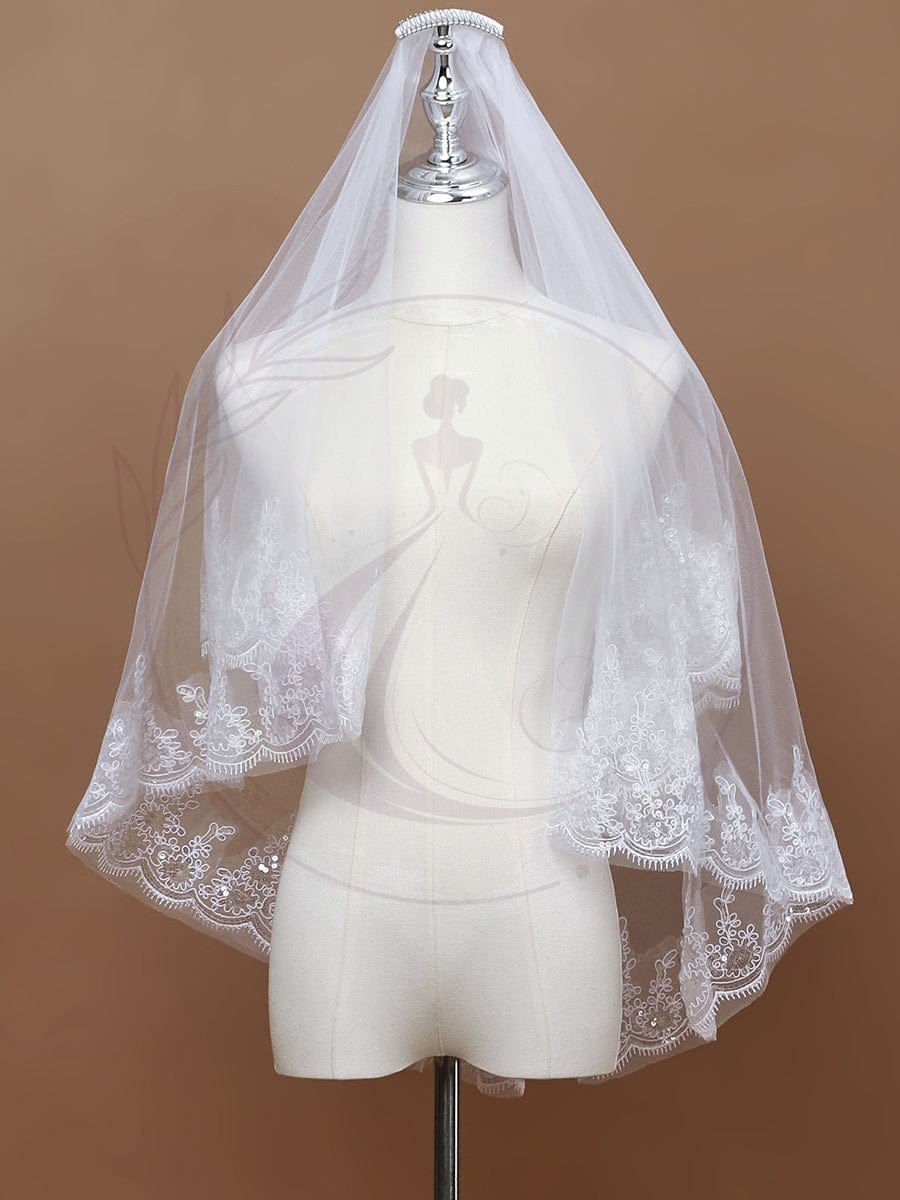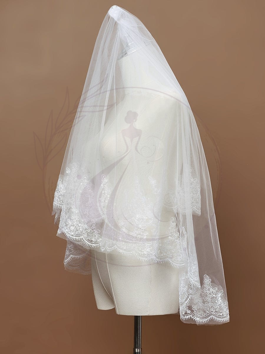 Voile de mariée en tulle à double couche avec appliques en dentelle