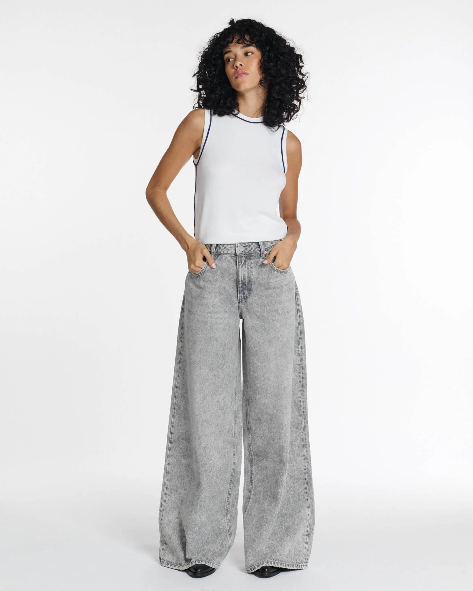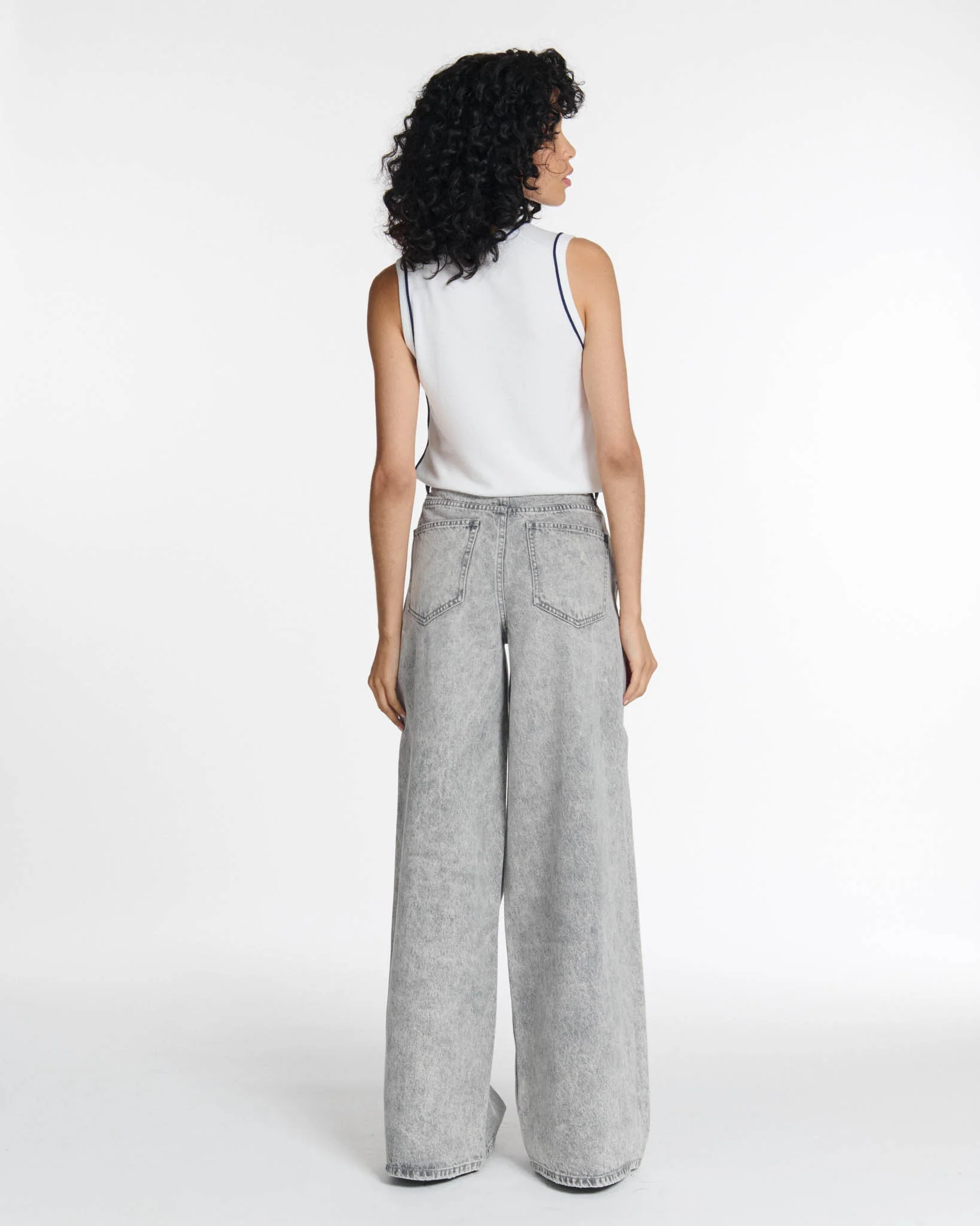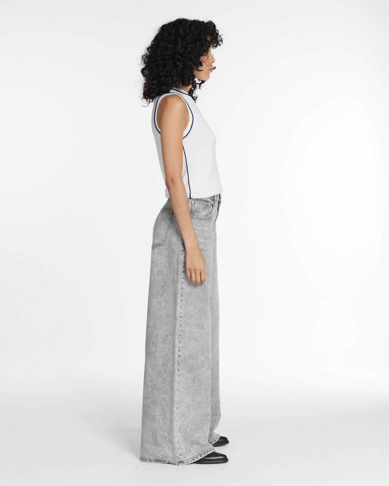 Ce DENIM WIDE LEG habille et stylise à lui seul toute la silhouette.