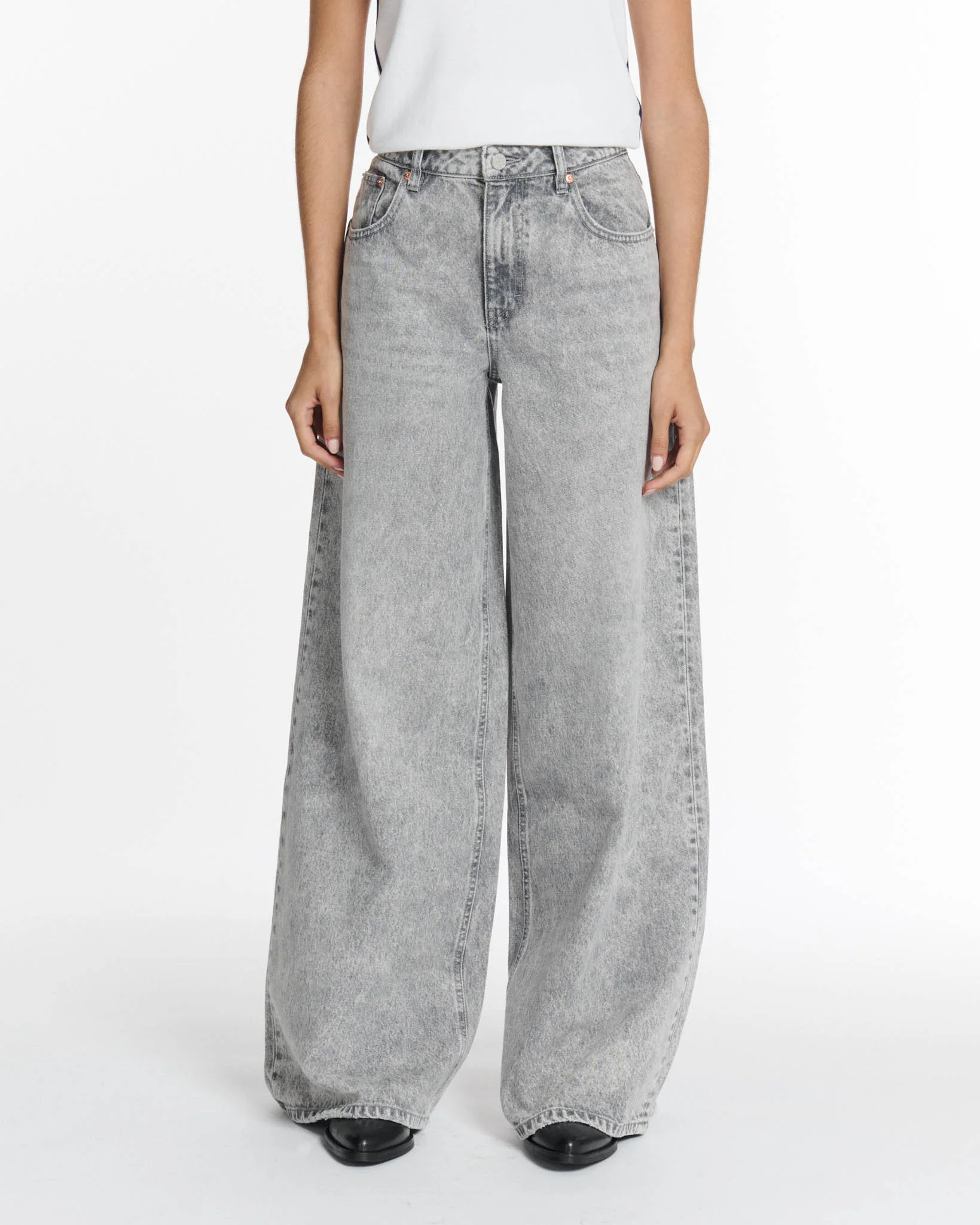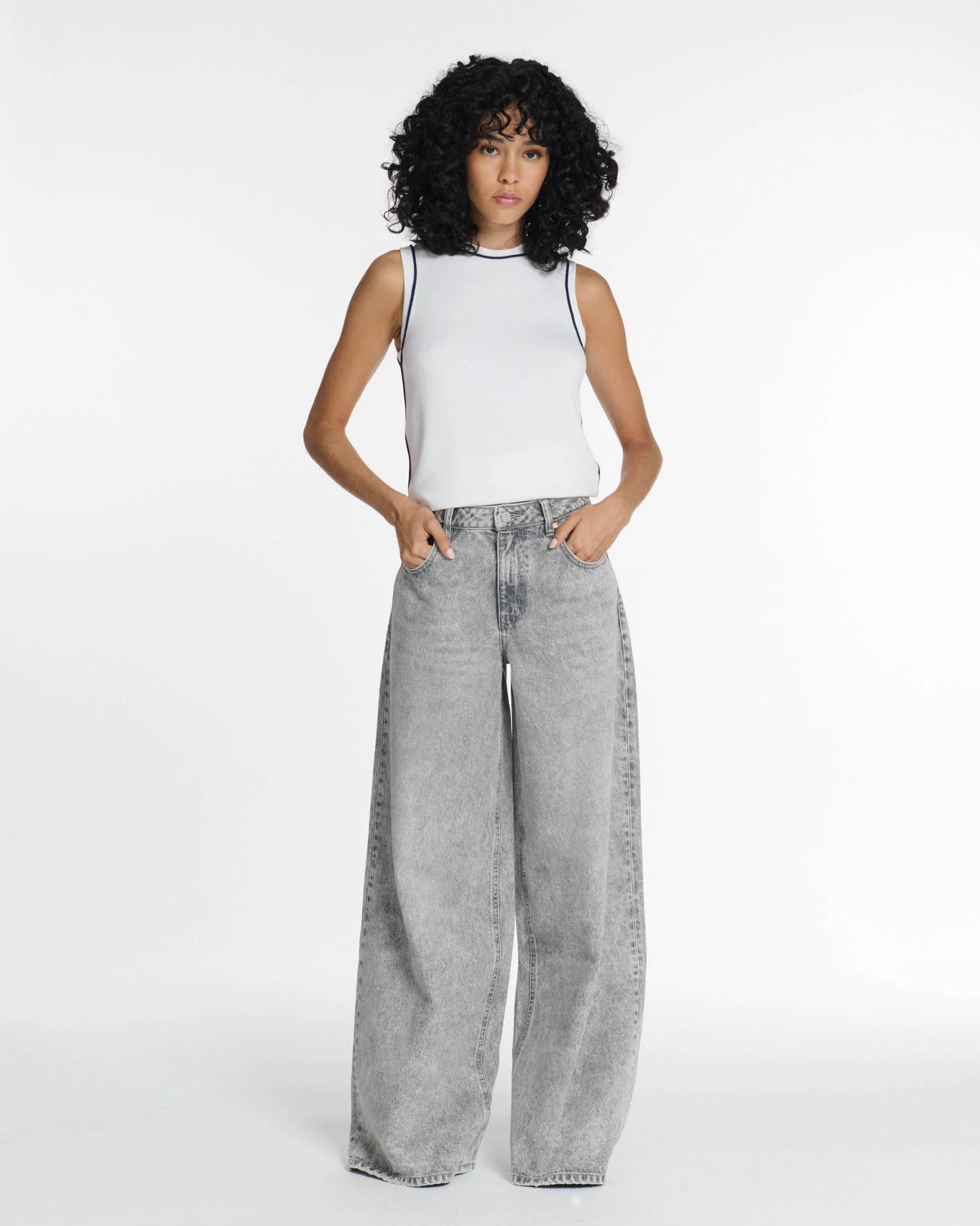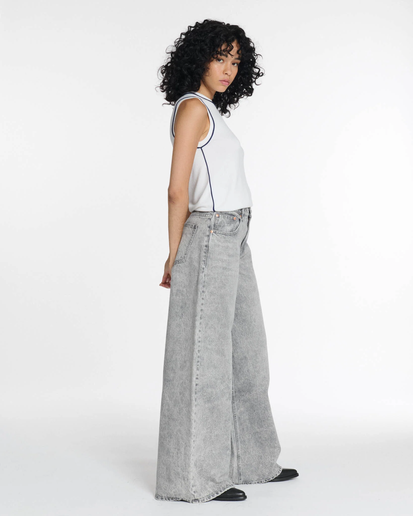 Ce DENIM WIDE LEG habille et stylise à lui seul toute la silhouette.
