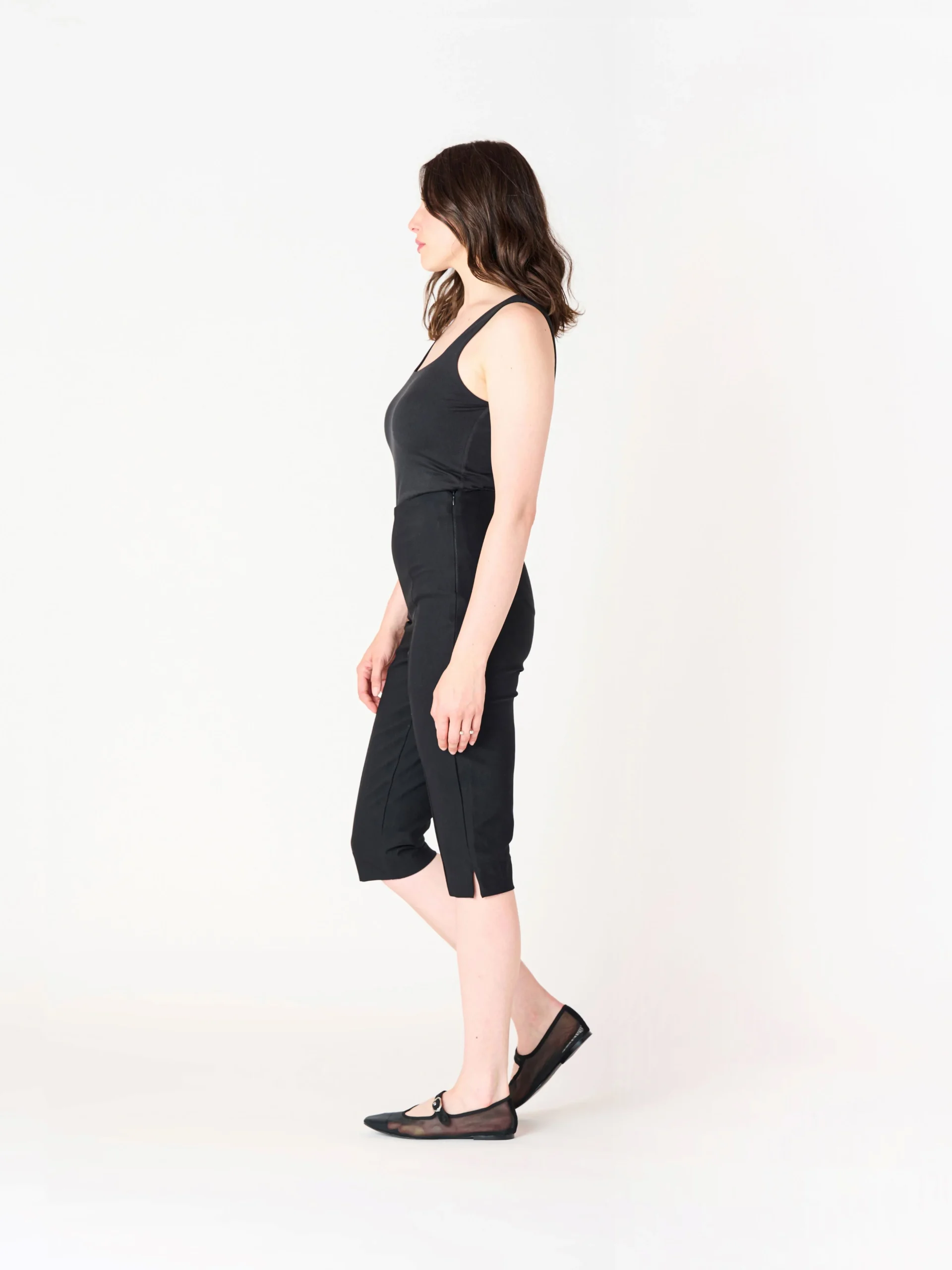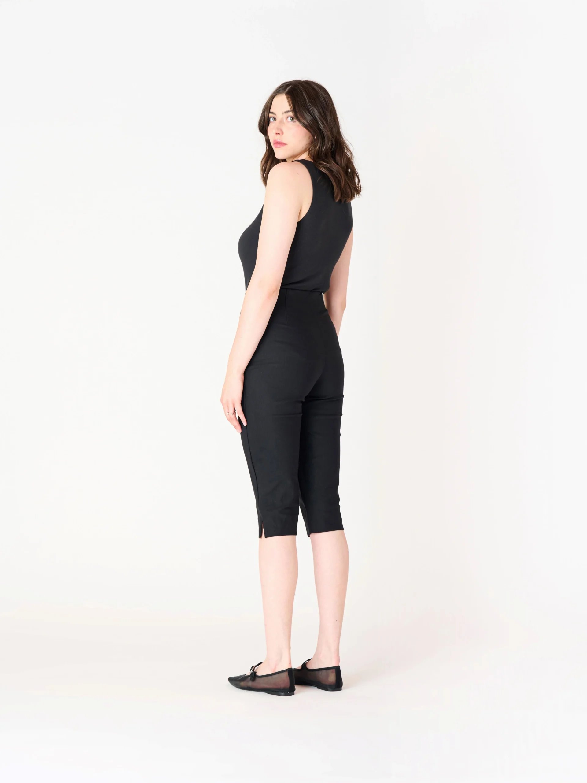 Ce pantalon capri élégant de couleur marine est conçu pour offrir à la fois confort et style. Il présente une coupe ajustée. Fabriqué dans un tissu léger et extensible, il assure une grande liberté de mouvement tout en restant flatteur. Idéal pour les journées plus chaudes, ce capri peut être porté de manière décontractée avec un t-shirt ou un top fluide, ou habillé avec une blouse pour un look plus chic. Parfait pour un look estival ou de loisirs.