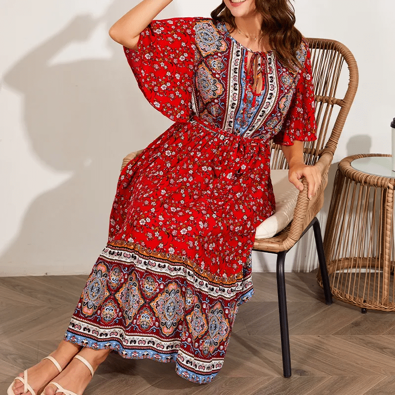 La robe bohème chic longue rouge imprimé floral est un must-have pour toutes les femmes qui aiment le style hippie. Avec ses imprimés floraux colorés et sa longueur époustouflante, cette robe est parfaite pour tout événement décontracté. Faite à partir de tissus de qualité supérieure, elle est douce et facile à porter.