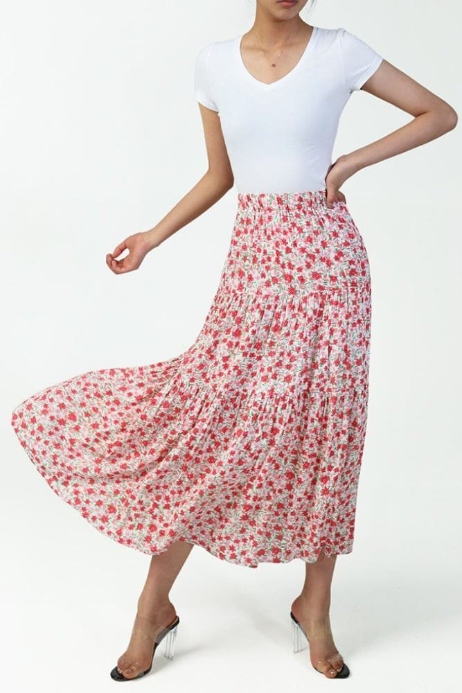 Une jupe bohème idéale à porter taille haute ou non, grâce à sa taille élastique. Son imprimé fleuri est très tendance et vous donnera une touche de soleil à votre tenue.